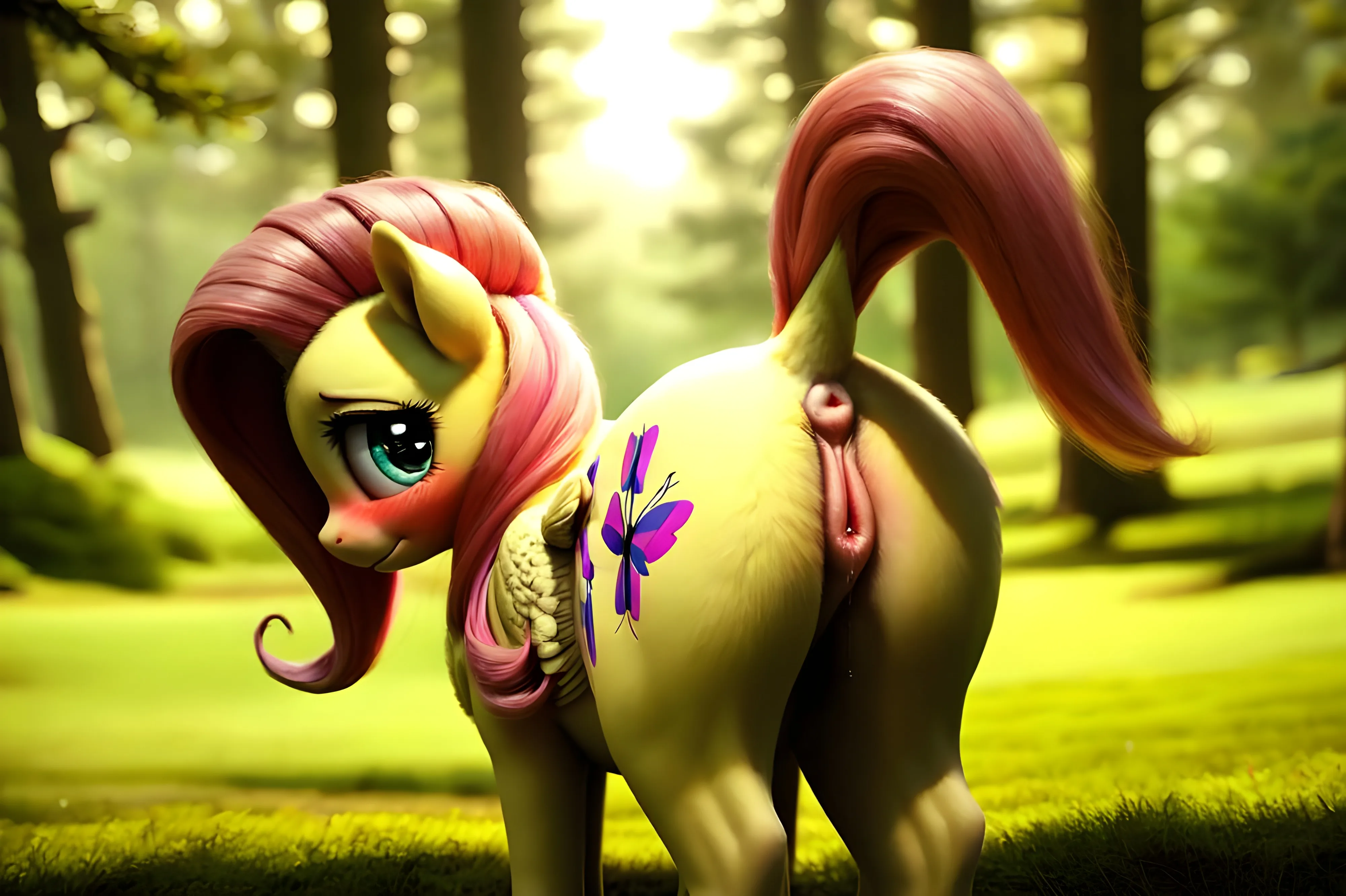 Fluttershy Tease: Raised Tail Reveals Equine Pussy And Teats | Yiff Party