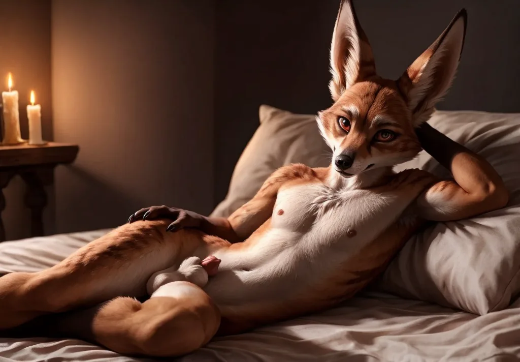 Fox Vulpera Nude On Bed Seductive Two Tone Fur | Yiff Party