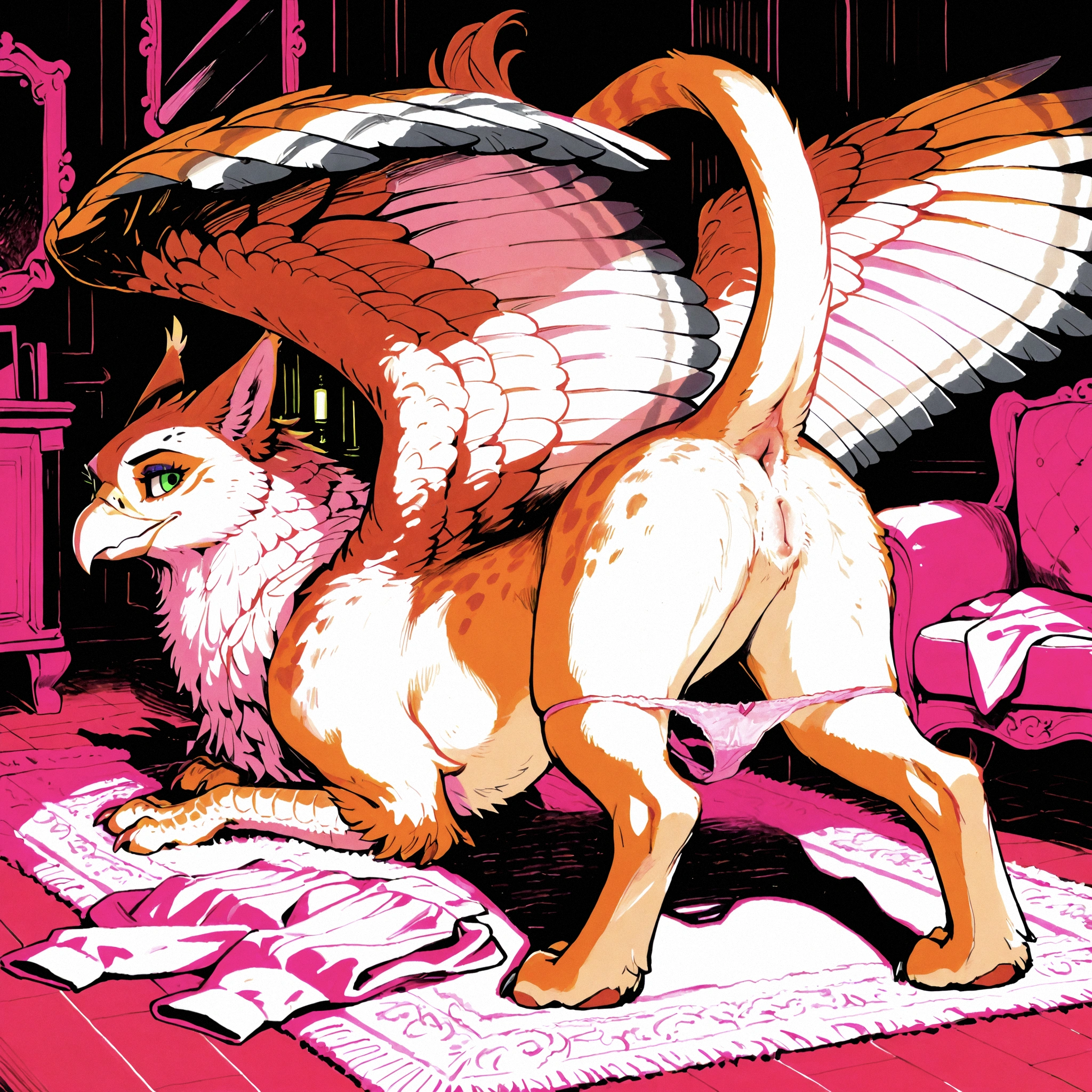 Furry Gryphon Babe Presents Pussy And Ass On Sofa | Yiff Party