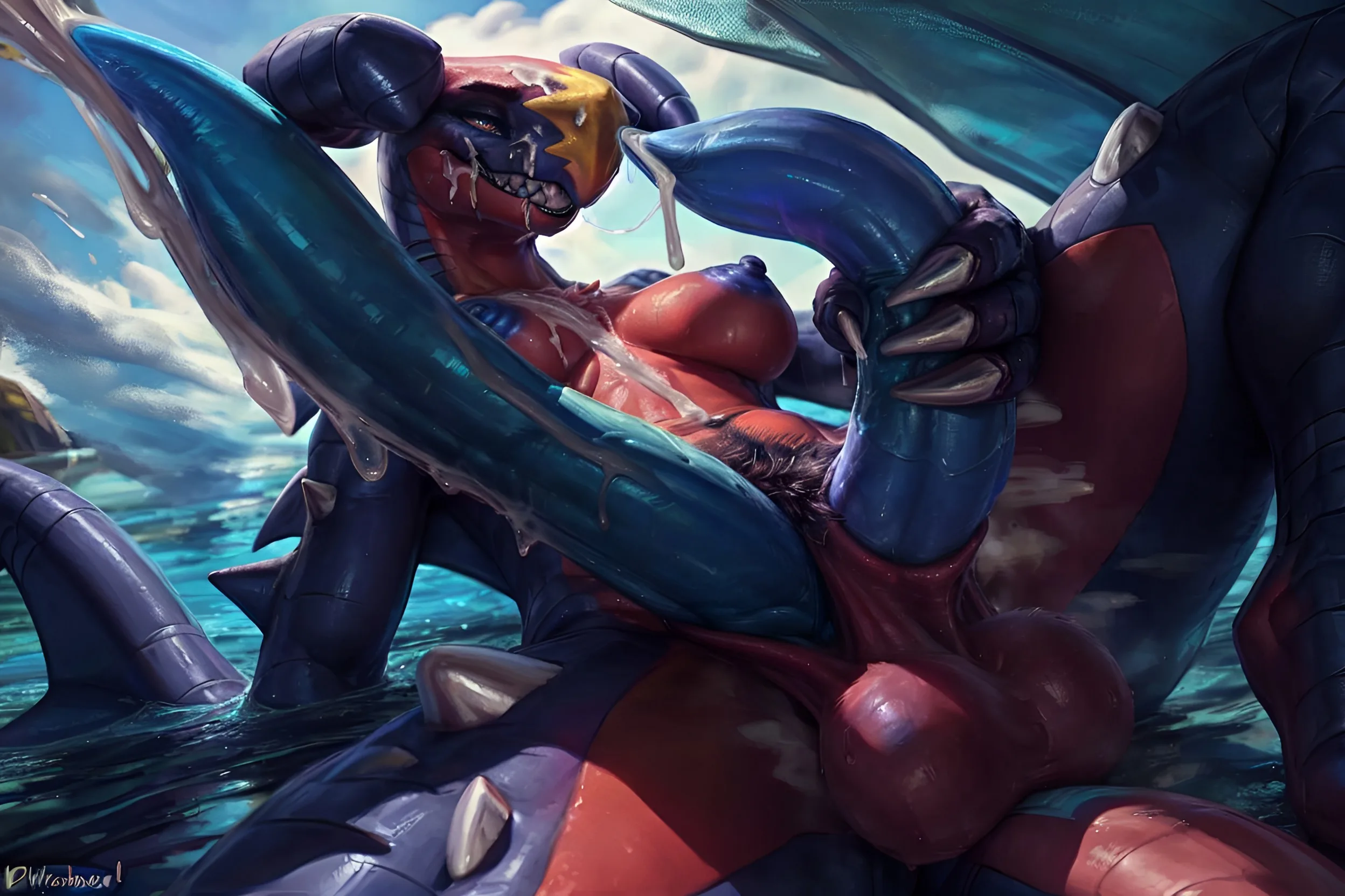 Garchomp Dragon Scalie Self-Fucks Two Hyper Cocks In Mythical Sea | Yiff Party