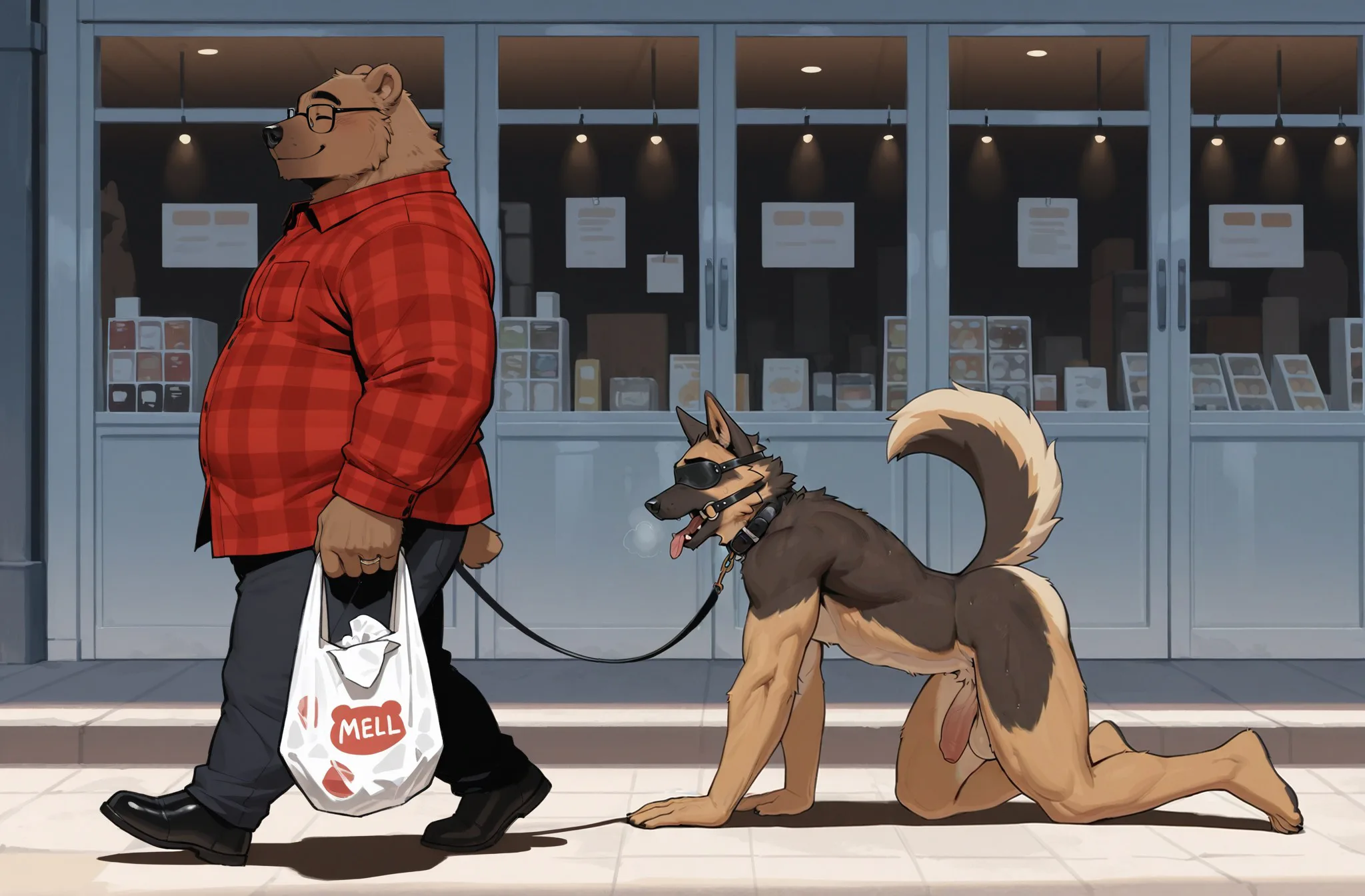 German Shepherd Anthro Petplay Leashed Nude Duo | Yiff Party