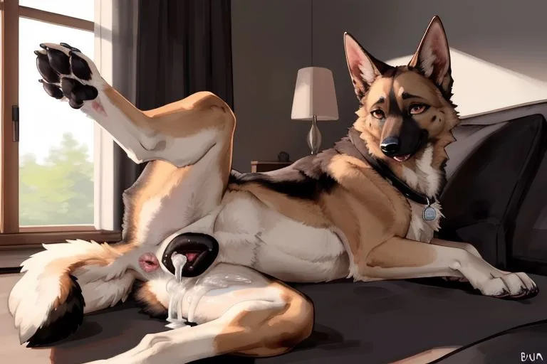 German Shepherd Female Presents Pussy After Doggy Style Creampie | Yiff Party