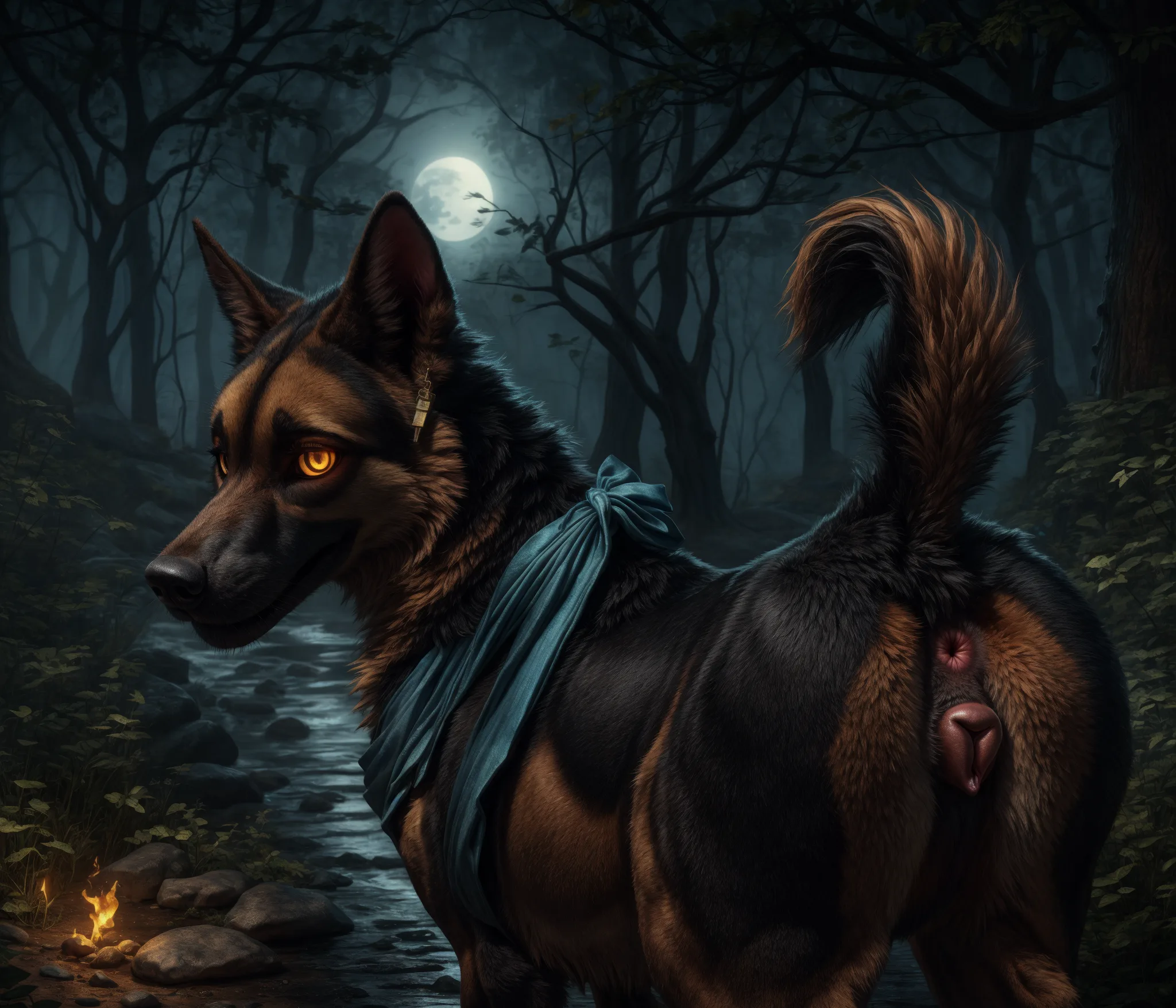 German Shepherd Shows Off Pussy And Ass By Campfire | Yiff Party
