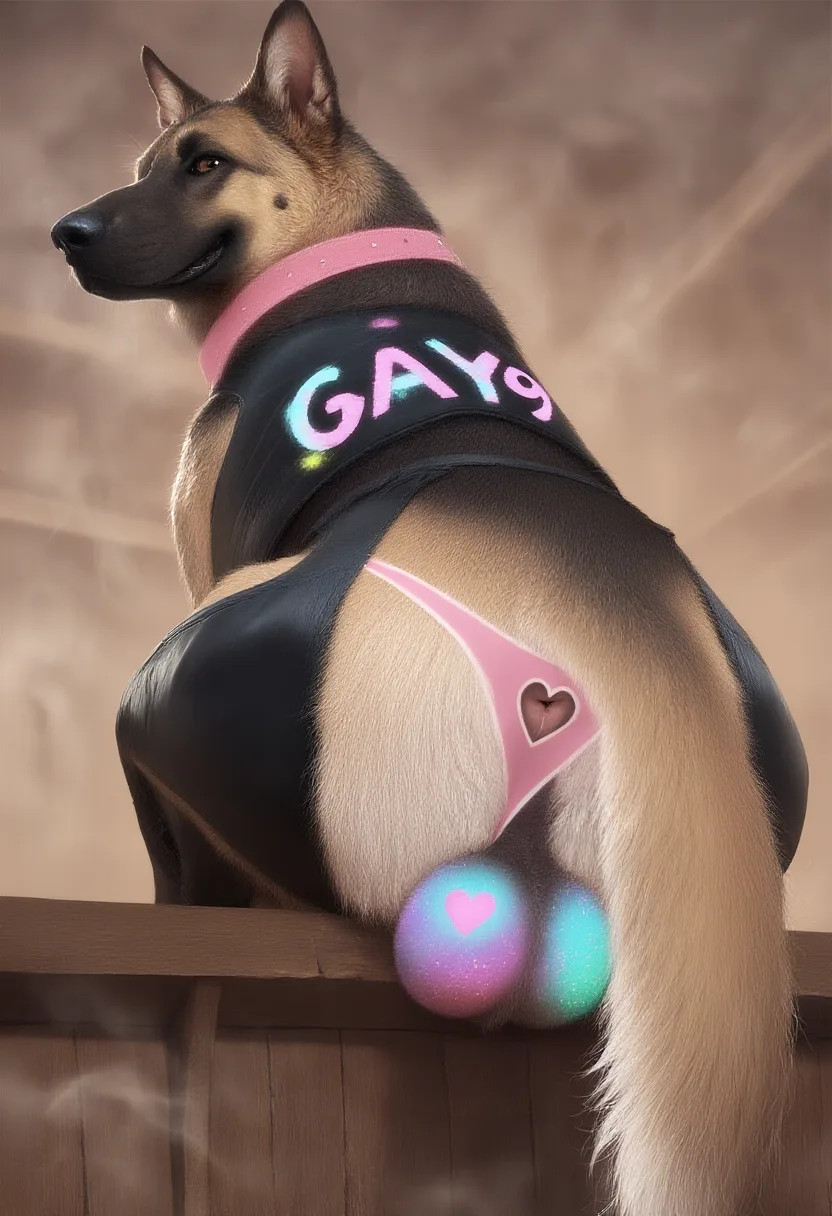 German Shepherd Solo Rear View Sitting On Bar Table With Thong And Ves | Yiff Party