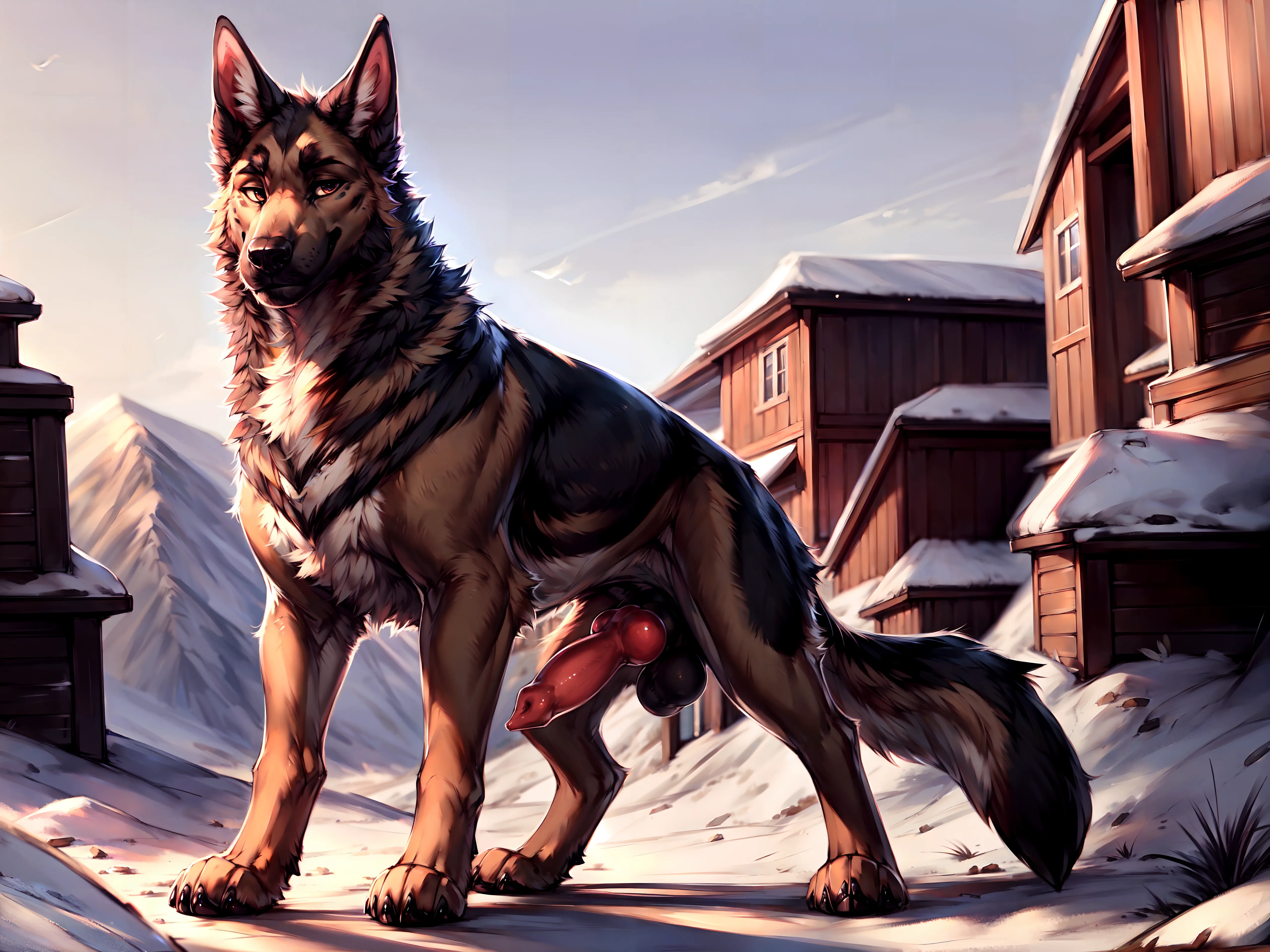 German Shepherd Stroking Thick Knotting Canine Cock | Yiff Party