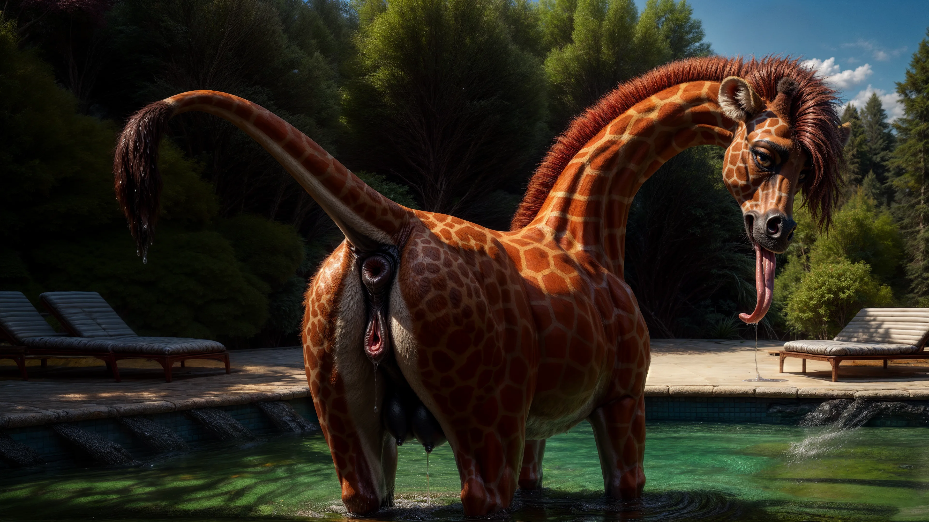 Giraffe Takes A Wet Solo Poolside Showing Off Her Striped Pussy | Yiff Party