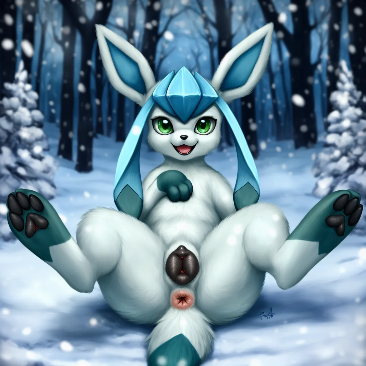 Glaceon Lying Back In Snow Presenting Her Blue Canine Pussy | Yiff Party