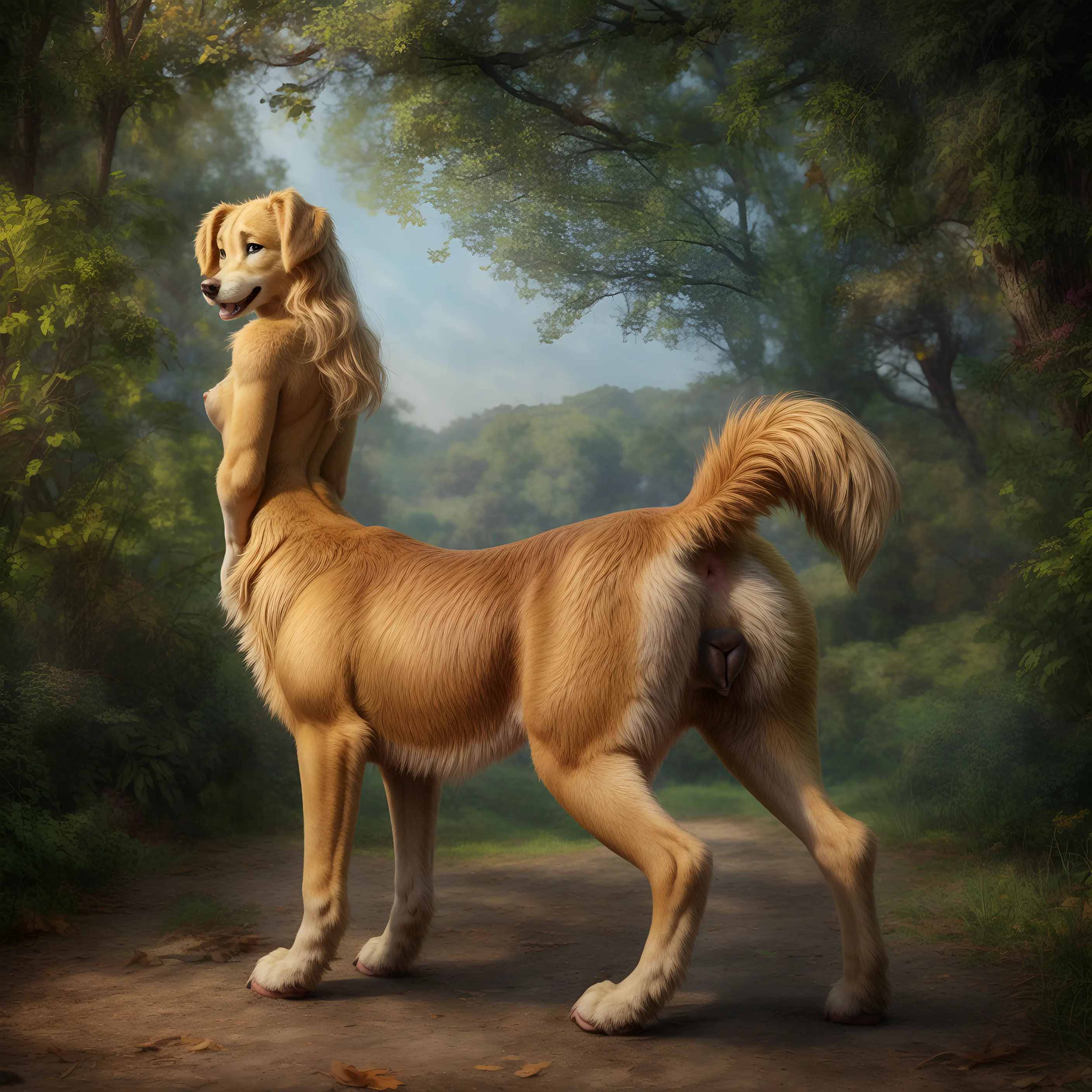 Golden Retriever Beauty Showing Off Her Pink Pussy And Anus In The For | Yiff Party