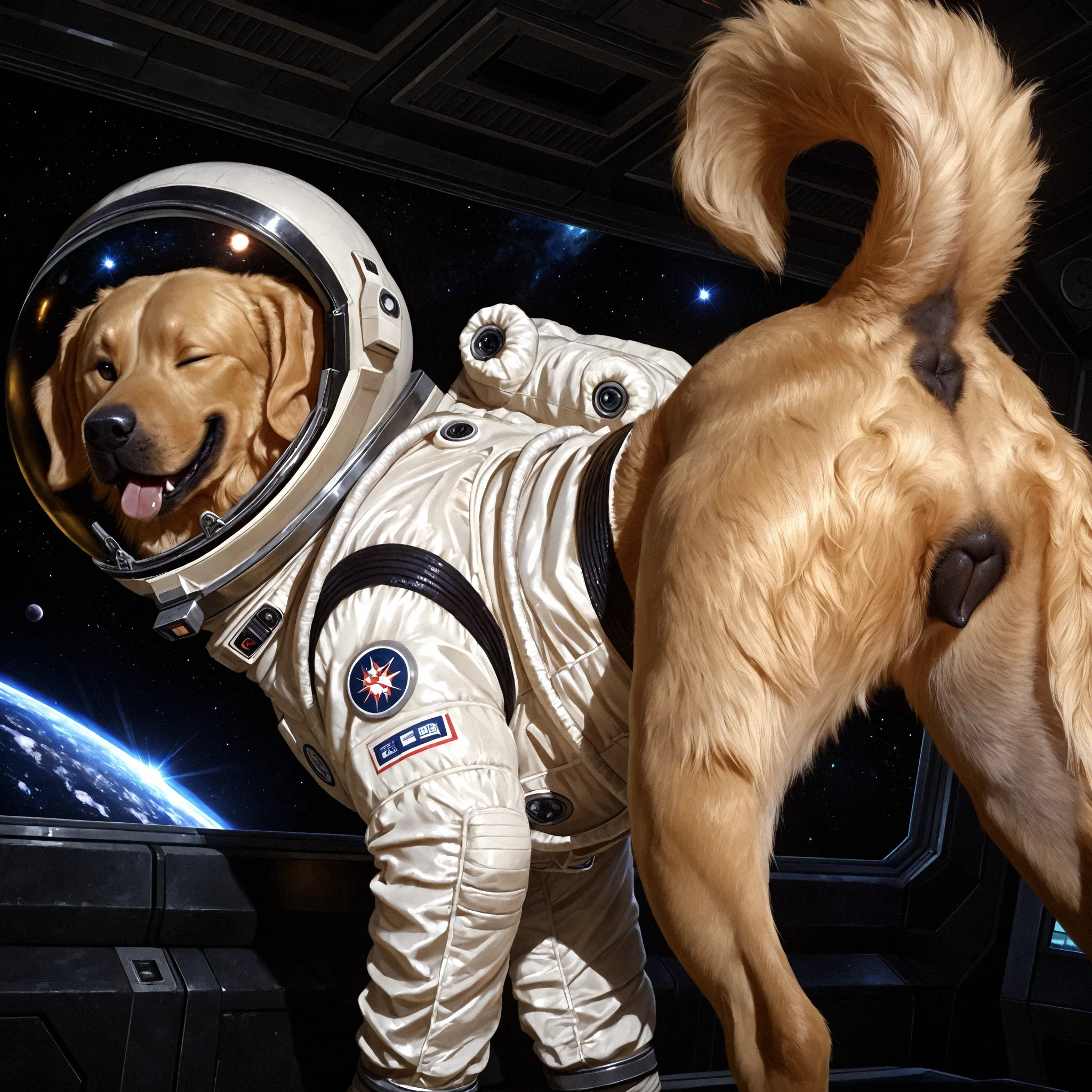 Golden Retriever Cosmo Presenting Black Pussy And Anus In Spacesuit | Yiff Party