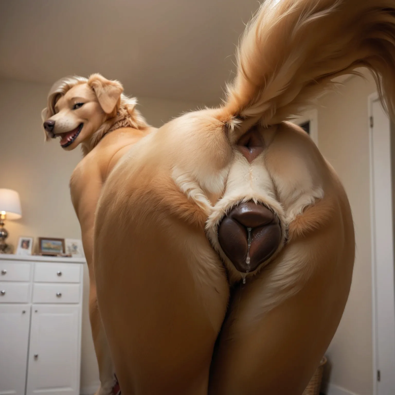 Golden Retriever Presents Wet Pussy From Behind | Yiff Party