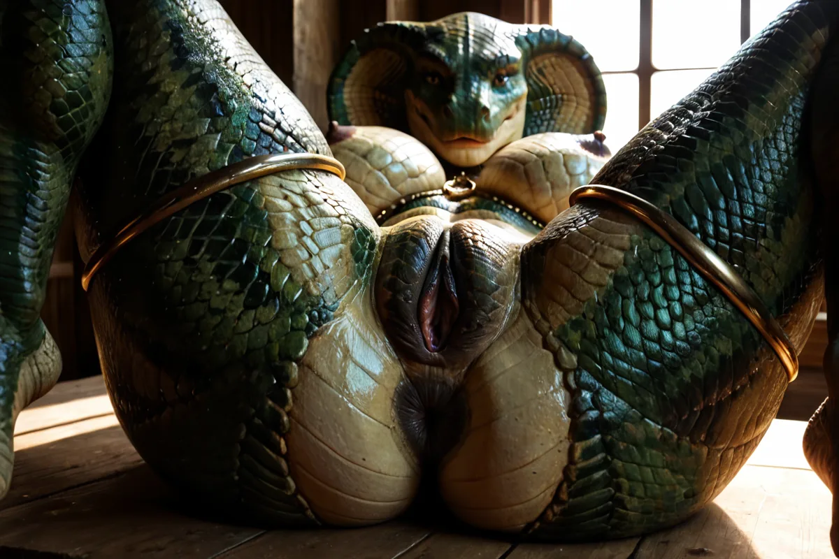Green Cobra Snake Girl Nude Spreading Pussy On Table | Yiff Party