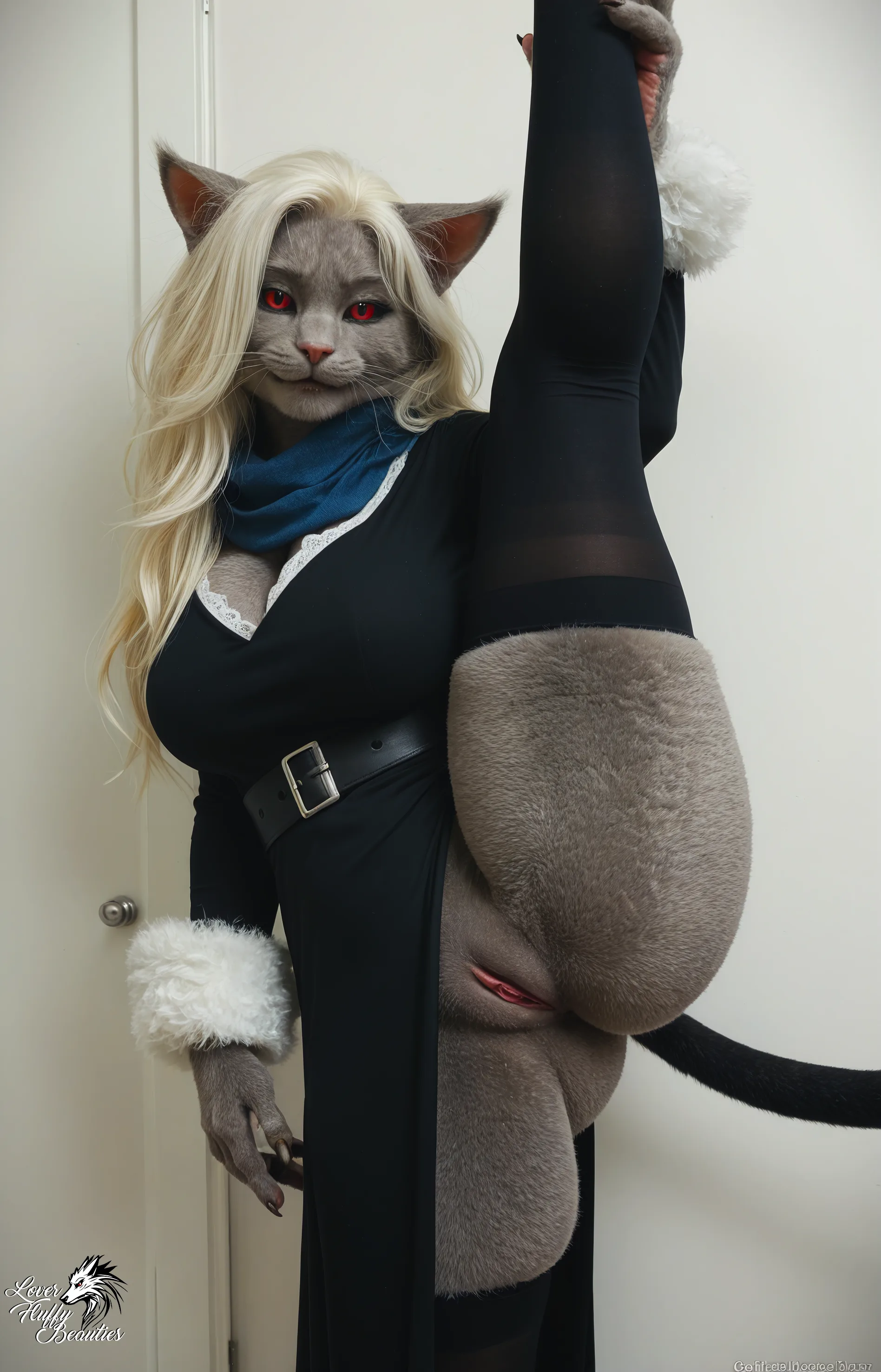 Grey Cat Anthro Solo In Dress Stockings Spreading Pussy | Yiff Party