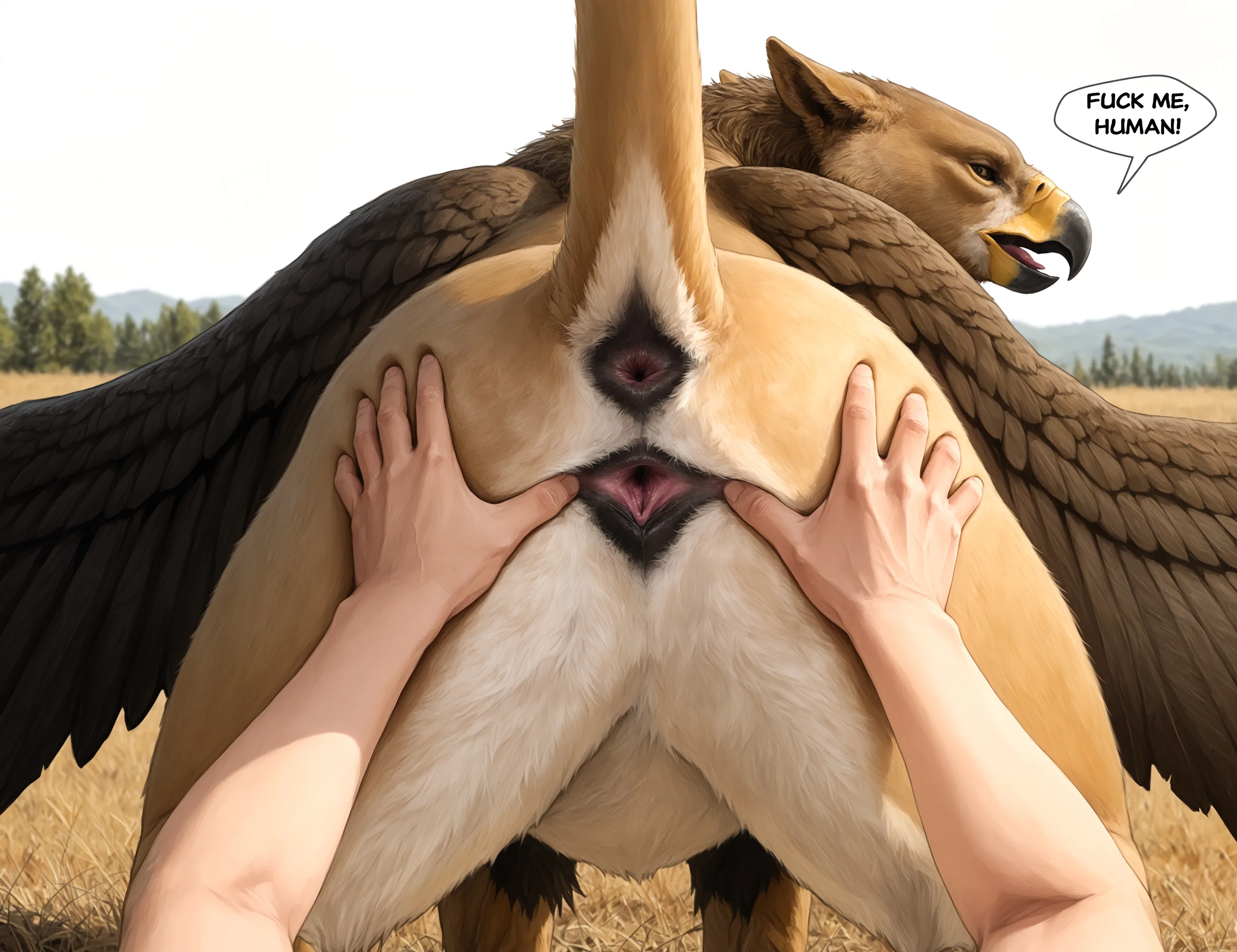 Gryphon Presents Spread Pussy And Raised Tail, Inviting Human For Inte | Yiff Party