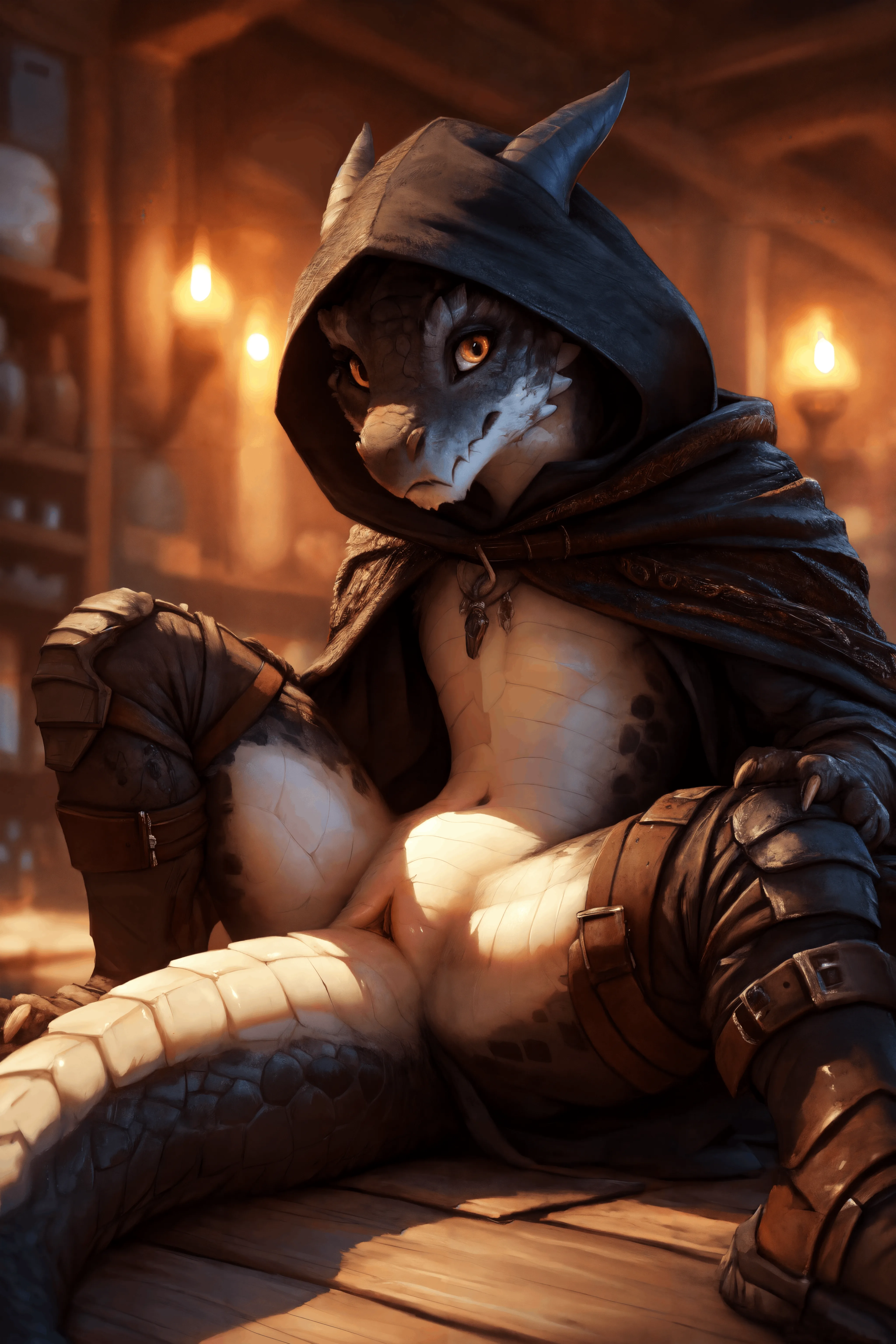 Happy Kobold Scalie Presenting Cloaca In Leather Boots | Yiff Party
