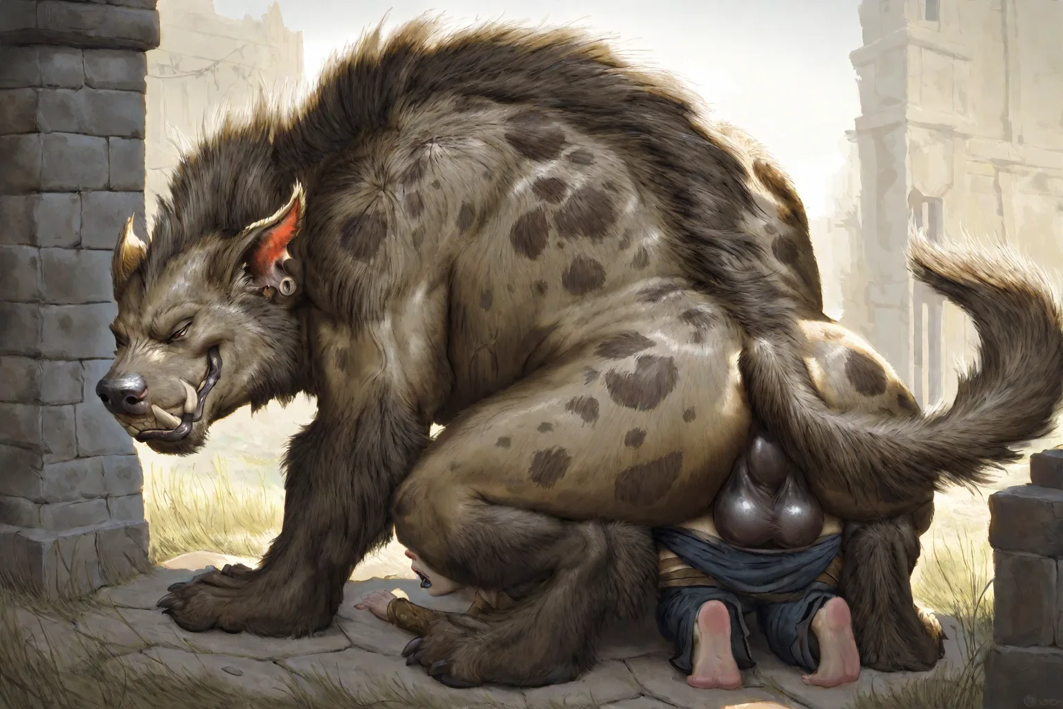 Horny Gnoll Fucks Smiling Hyaenid In Ruins From Behind | Yiff Party