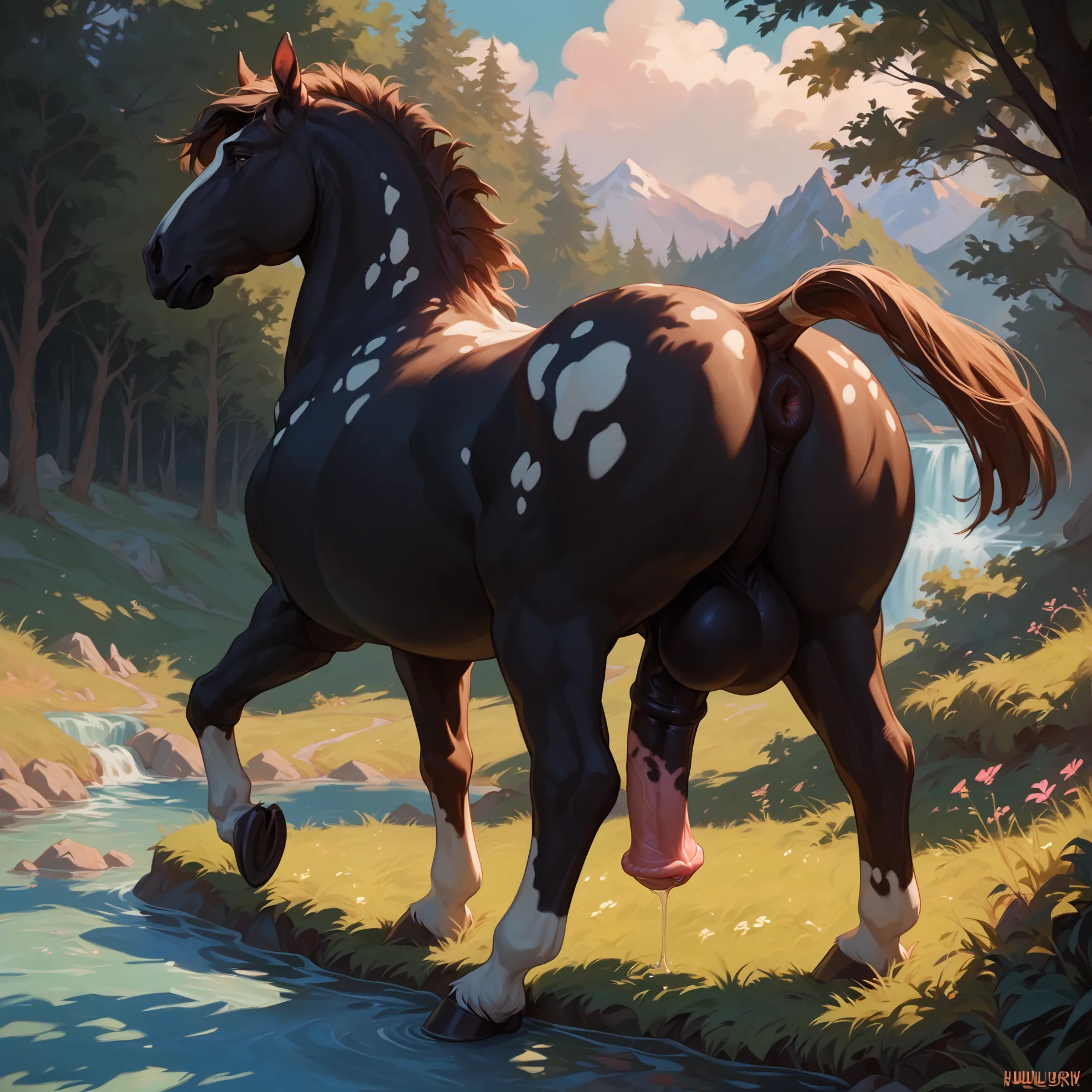 Horse Penis Dripping Precum In Forest Creek | Yiff Party