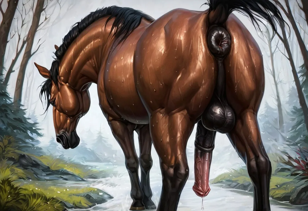 Horse Presenting Wet Sweaty Butt And Big Flared Equine Penis | Yiff Party