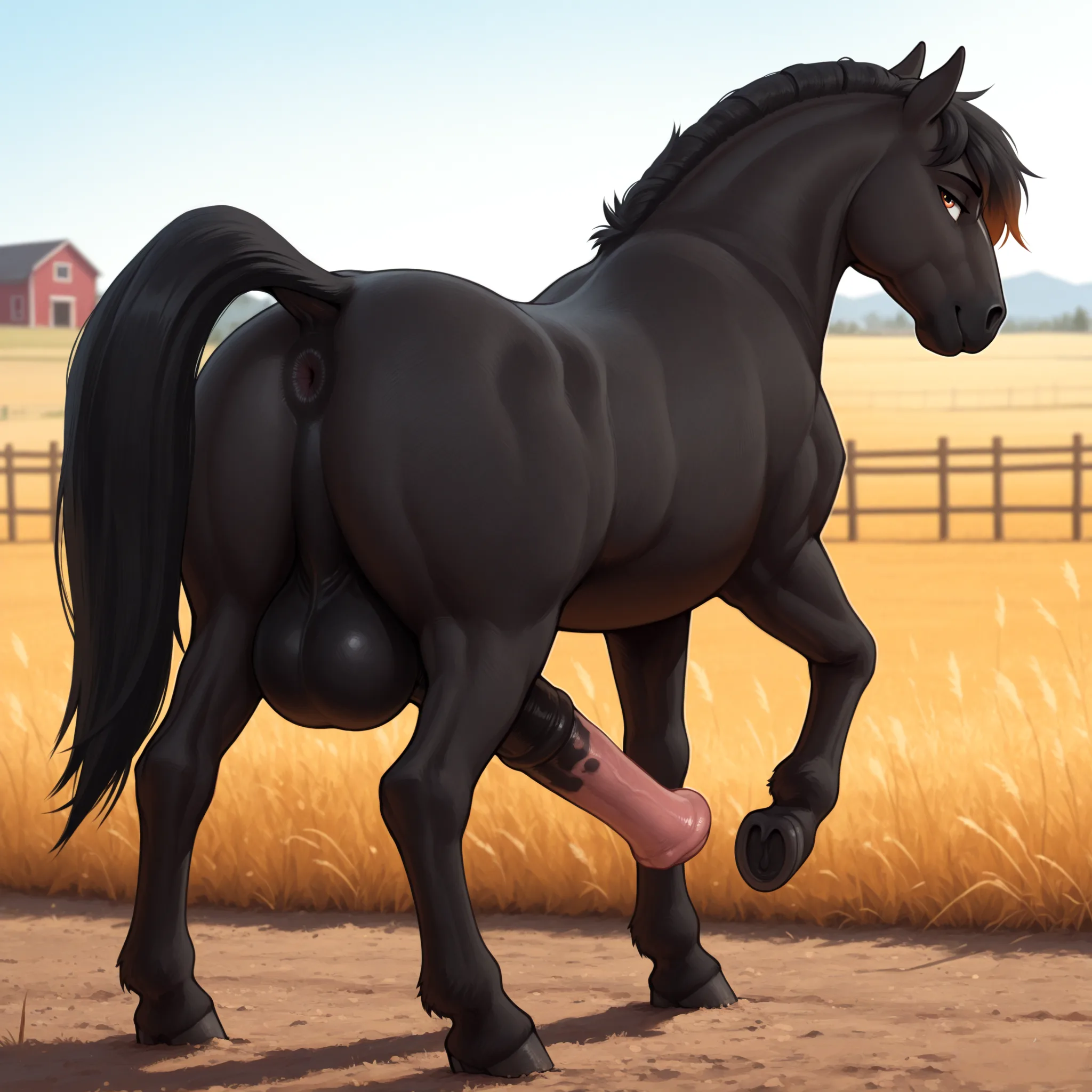 Horse Stallion With Huge Equine Penis And Big Balls Presenting Black A | Yiff Party