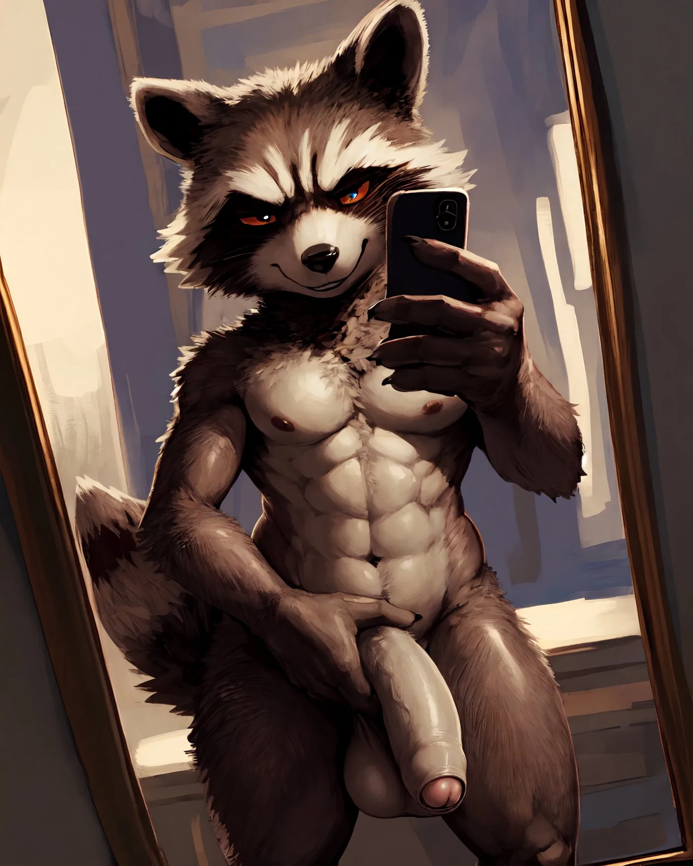 Hot Raccoon Stud Poses Nude For Mirror Selfie | Yiff Party