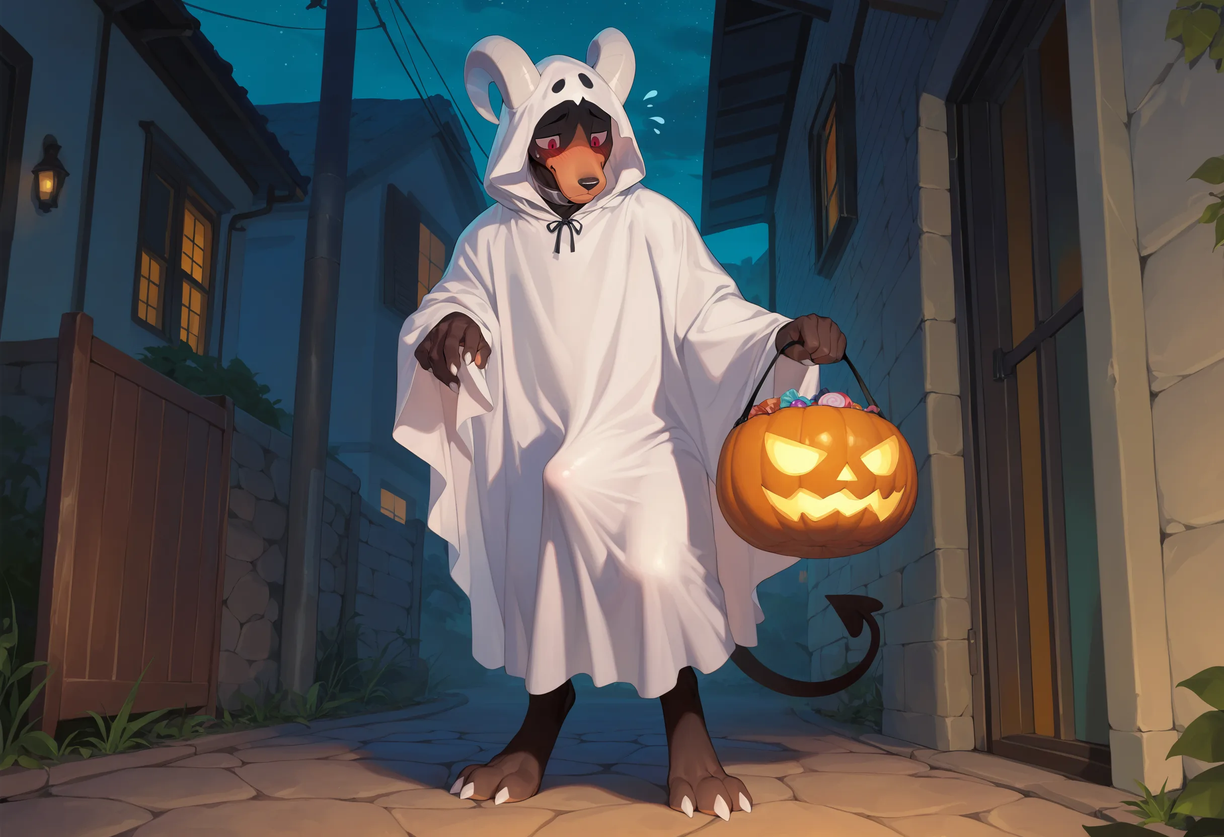 Houndoom Anthro In Ghost Costume Tenting Erection Outdoors On Hallowee | Yiff Party