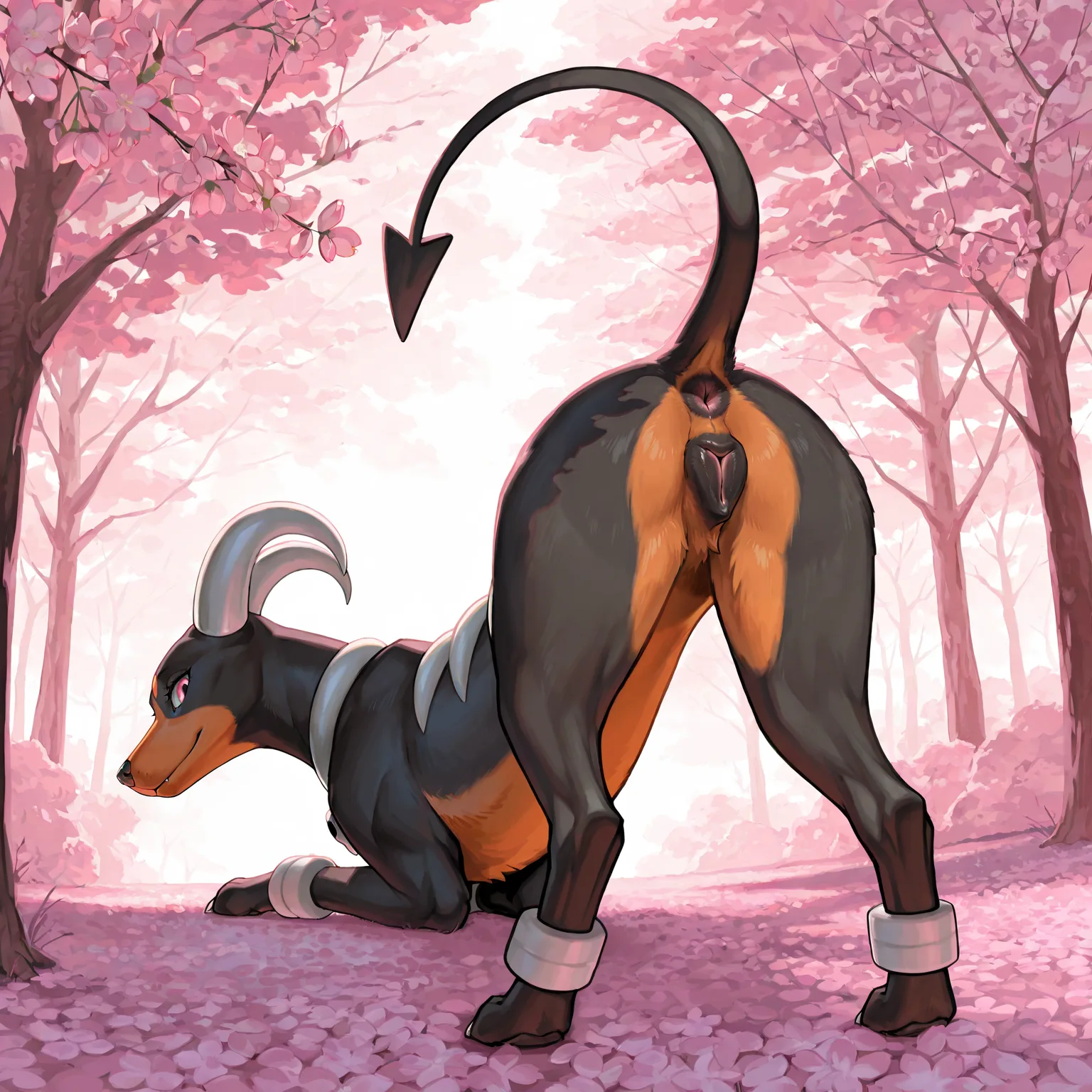 Houndoom Shows Her Furry Pussy And Ass In Cherry Blossom Forest | Yiff Party