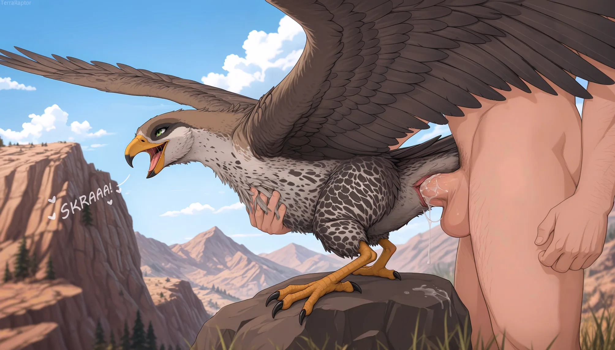Human Penetrating Female Accipitrid Bird From Behind On Cliff | Yiff Party