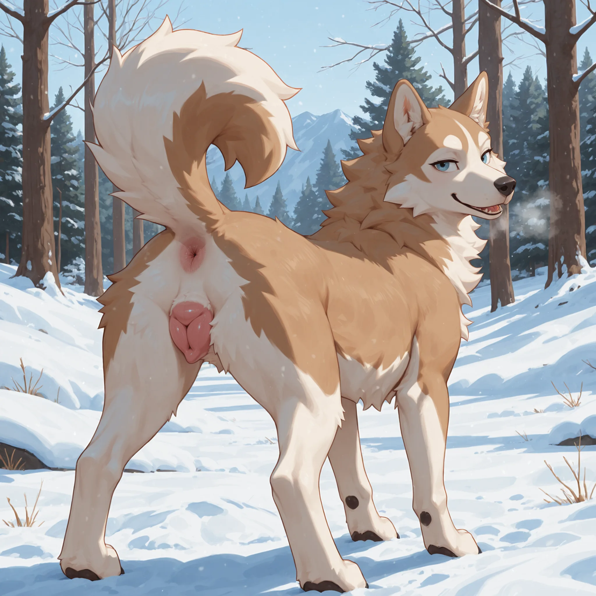 Husky Bitch Standing Outside In Snow With Raised Tail Showing Pussy An | Yiff Party