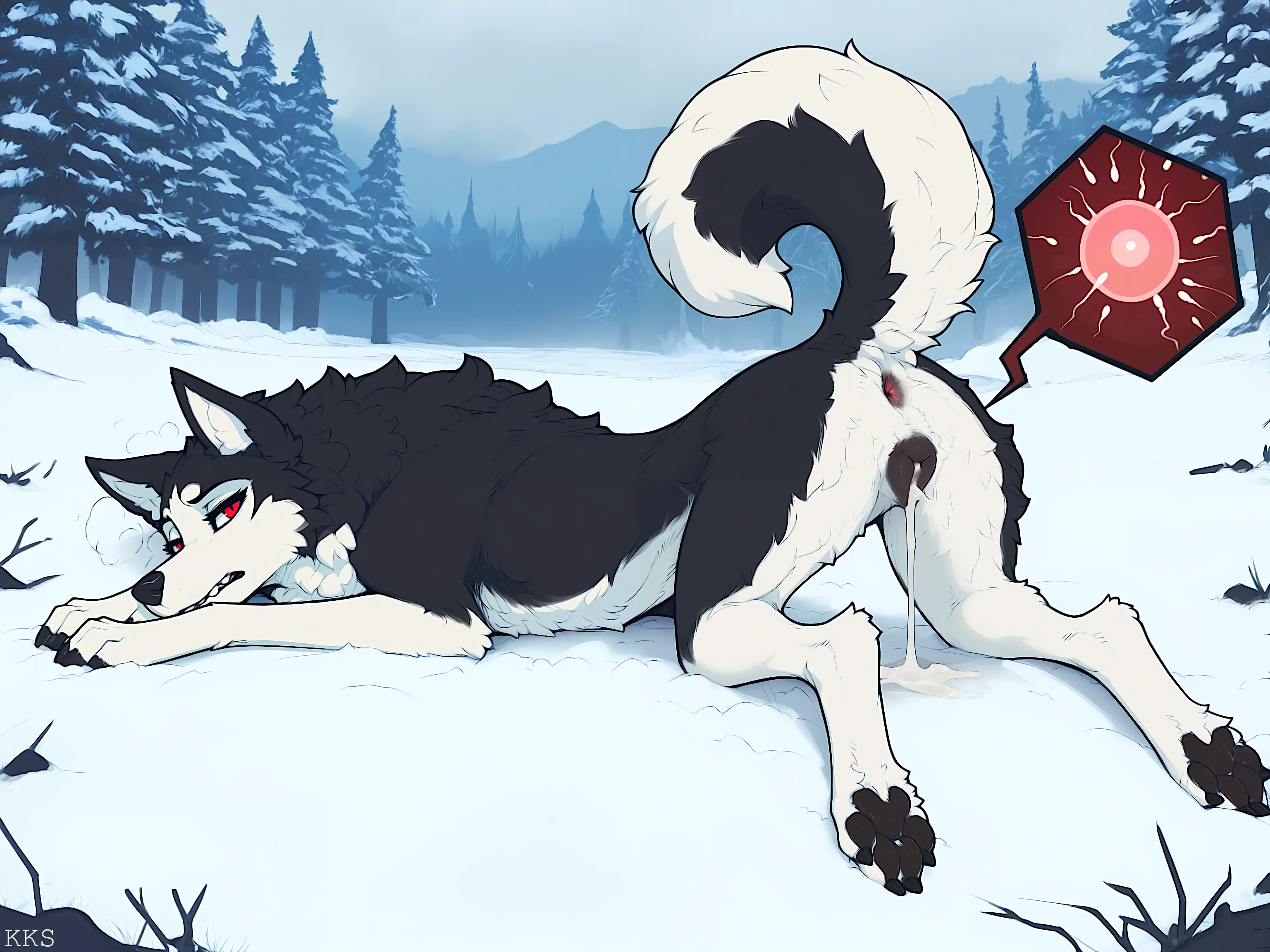 Husky Bitch With Red Eyes Shows Off Her Wet Pussy And Ass In Snowy For | Yiff Party