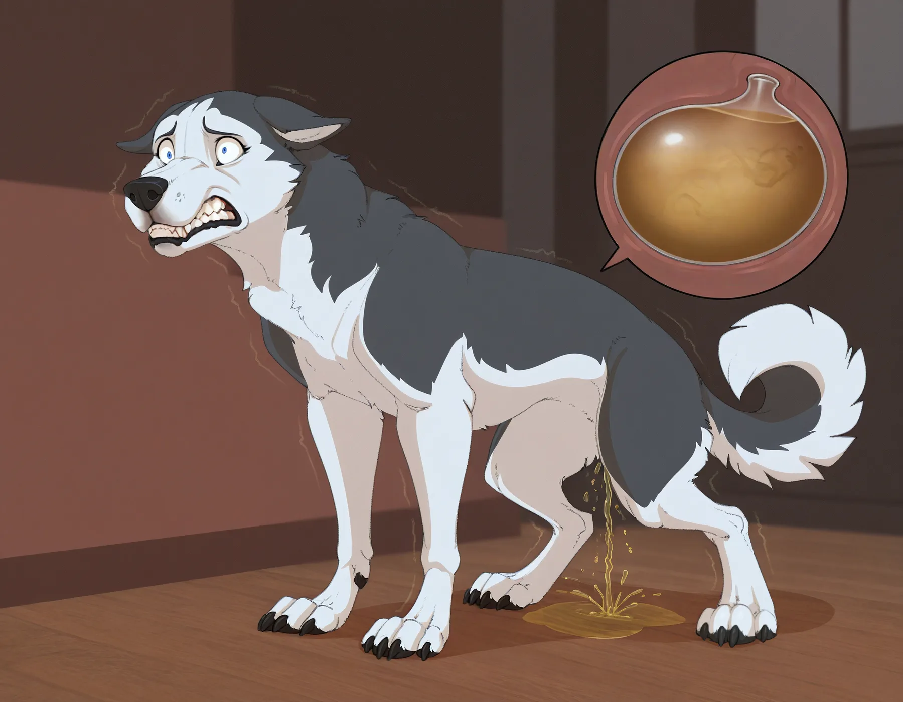 Husky Female Peeing With Urine Stream And Pool, Embarrassed Expression | Yiff Party