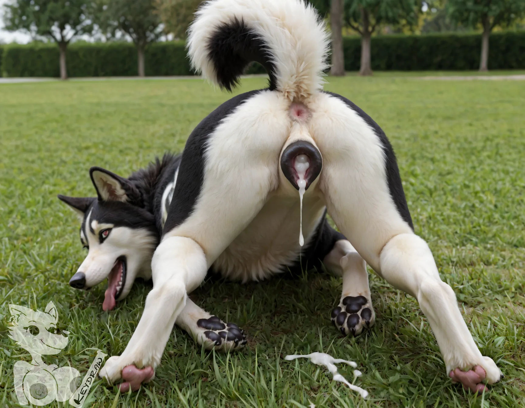 Husky Furry With Dripping Cum And Ahegao Face In Park | Yiff Party