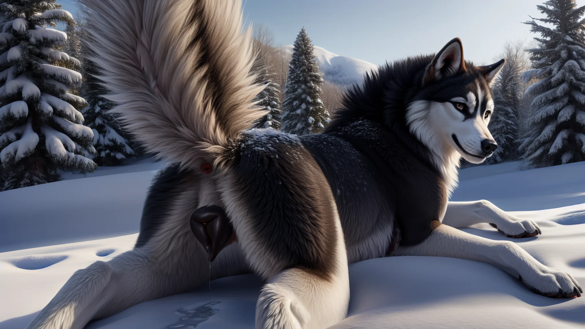 Husky Slut Lying Front Raised Tail Anatomically Correct Wet Pussy | Yiff Party