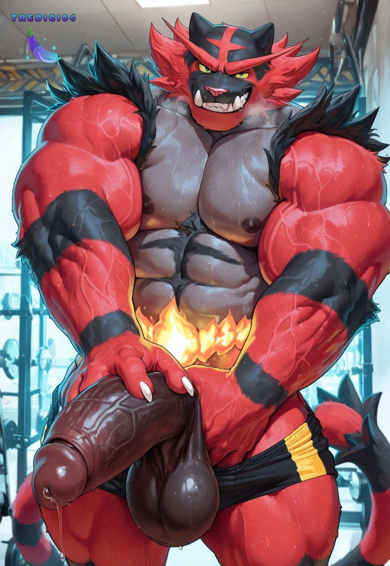 Incineroar Anthro Muscular Solo Aroused Huge Veiny Erection Sweaty Gli | Yiff Party