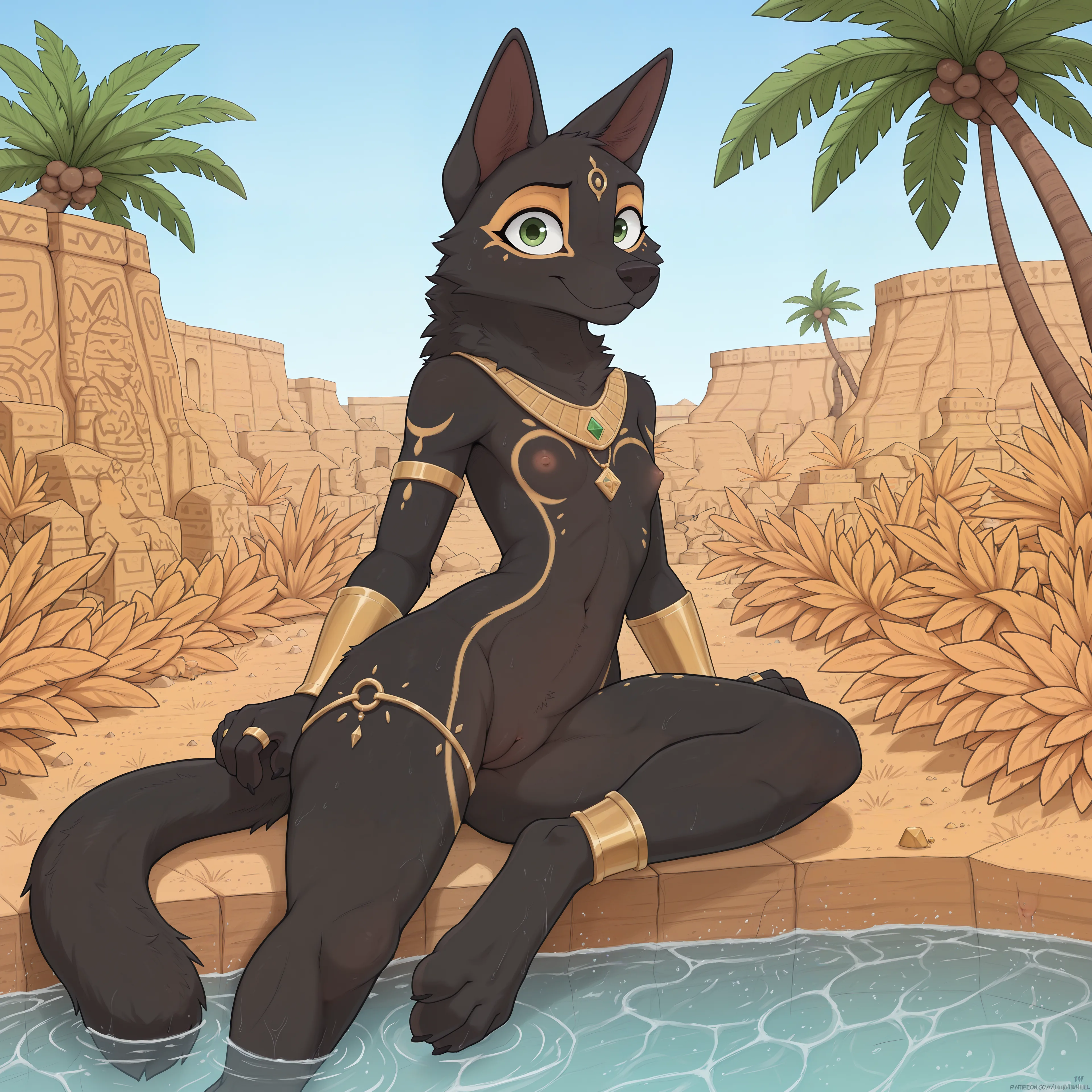 Jackal Presenting Wet Bodypainted Nude Self With Jewelry And Seductive | Yiff Party