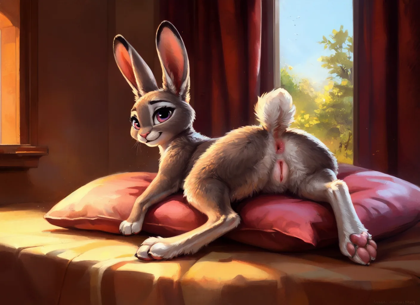 Judy Hopps Nude On Bed Spreading Legs Presenting Pussy To Viewer | Yiff Party