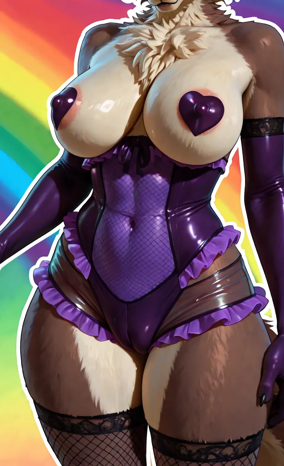 Juno The Busty White Wolf In Fishnet Lingerie Shows Off Curvy Body On | Yiff Party
