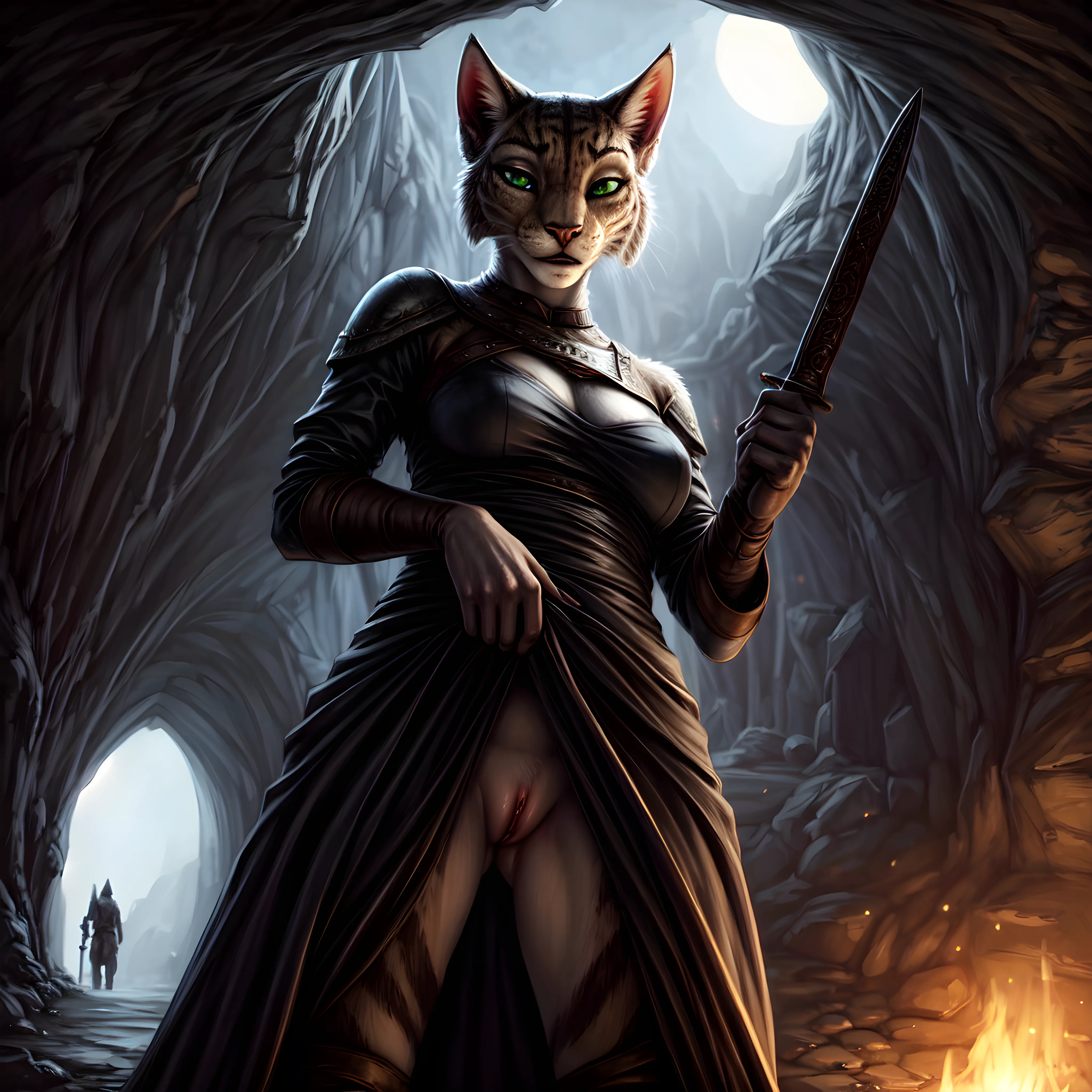 Khajiit Seductress In Leather Armor Lifts Robe Exposing Pussy By Moonl | Yiff Party