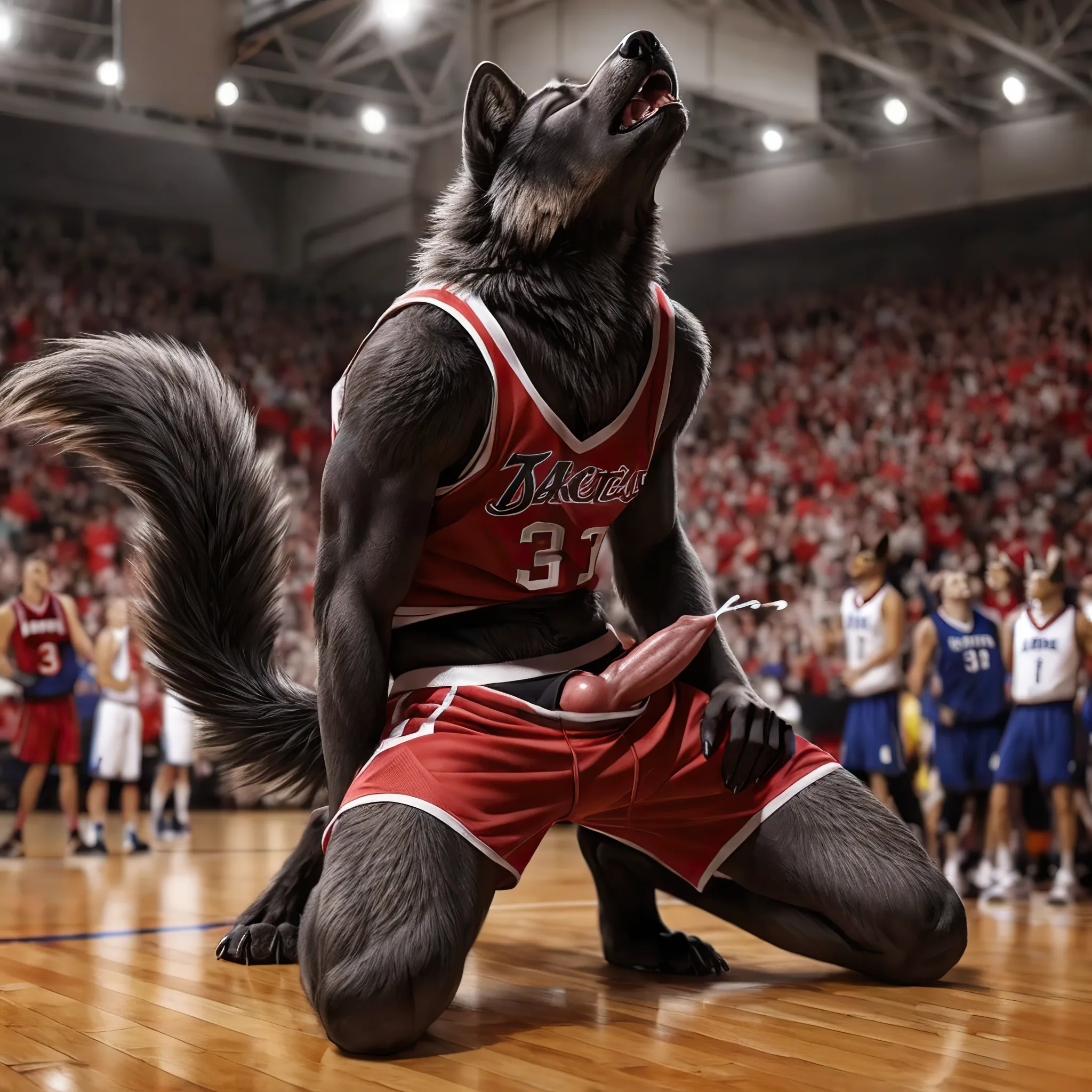Kneeling Black Wolf Ejaculates On Basketball Court | Yiff Party