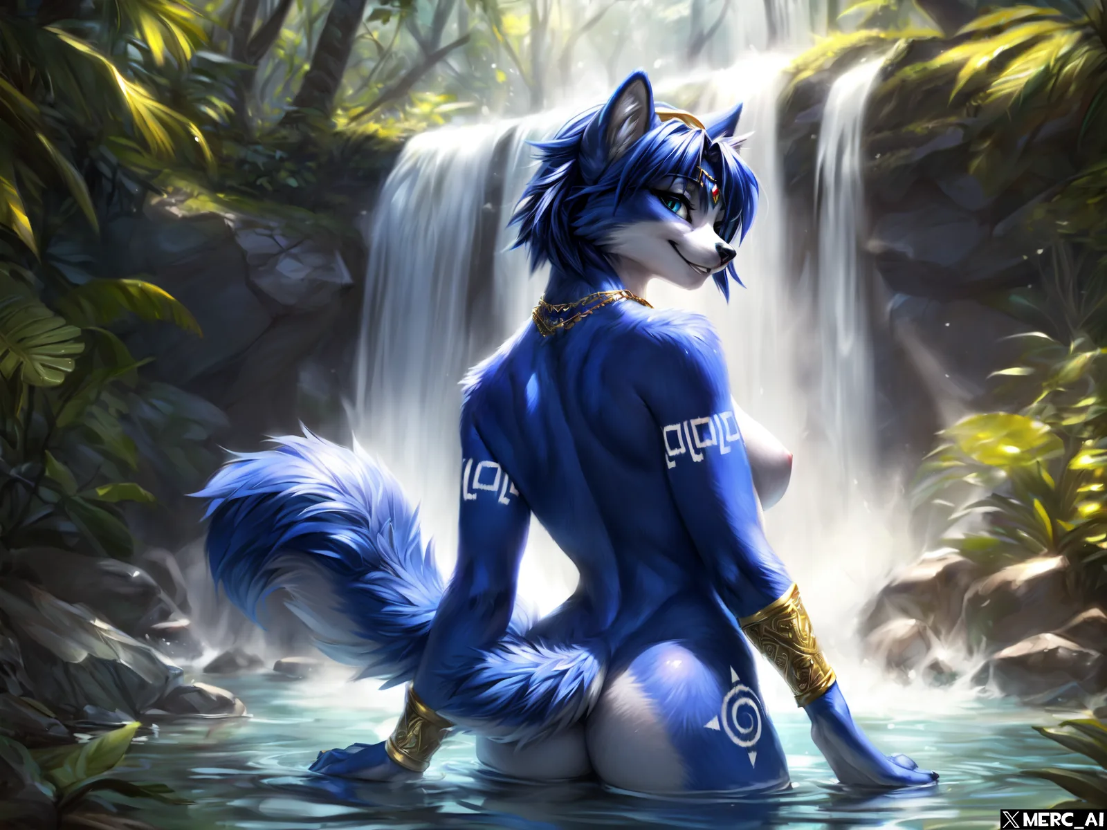 Krystal Shows Off Her Fluffy Blue Fox Body By A Jungle Waterfall | Yiff Party