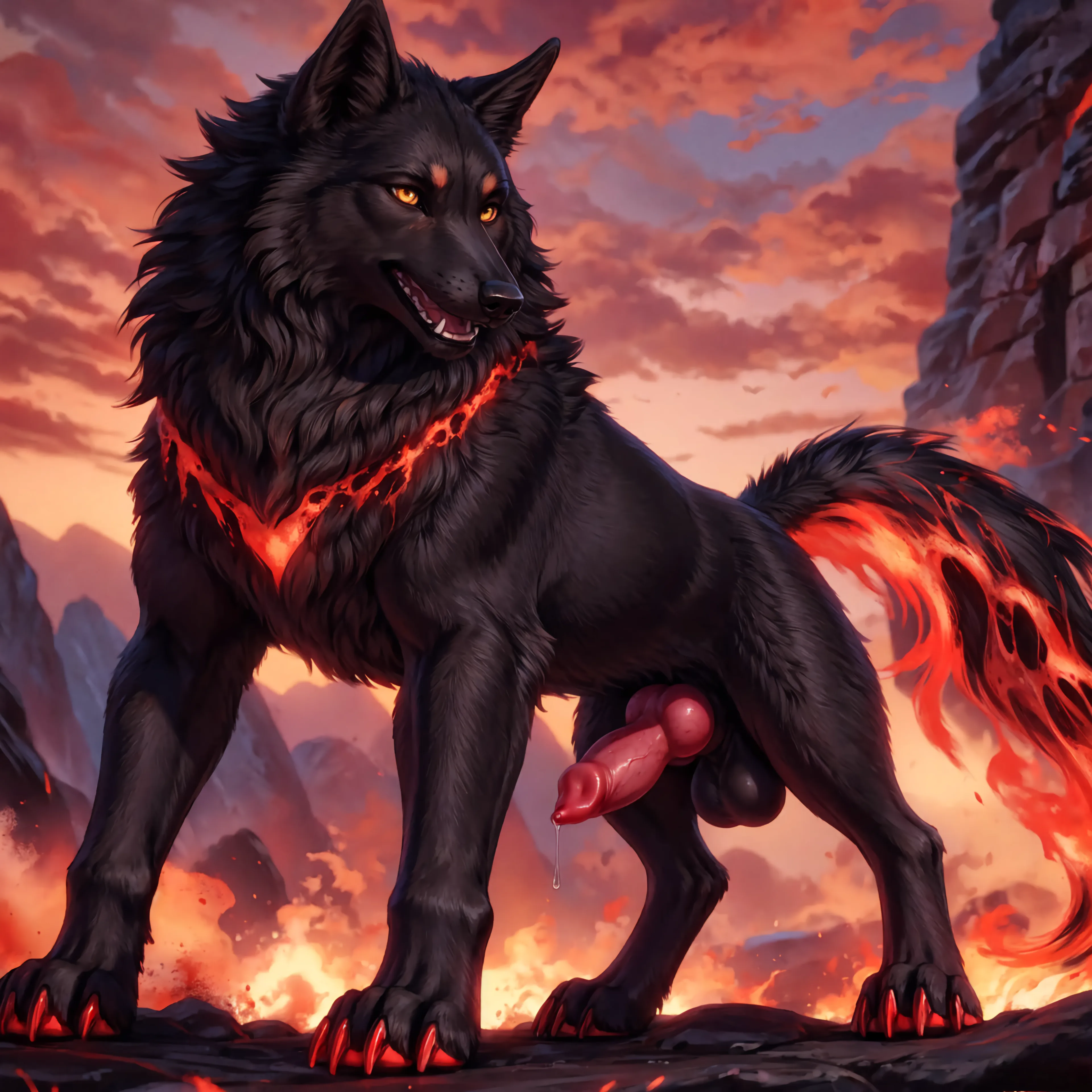 Lava Demon Wolf Leaking Precum Over Volcano | Yiff Party