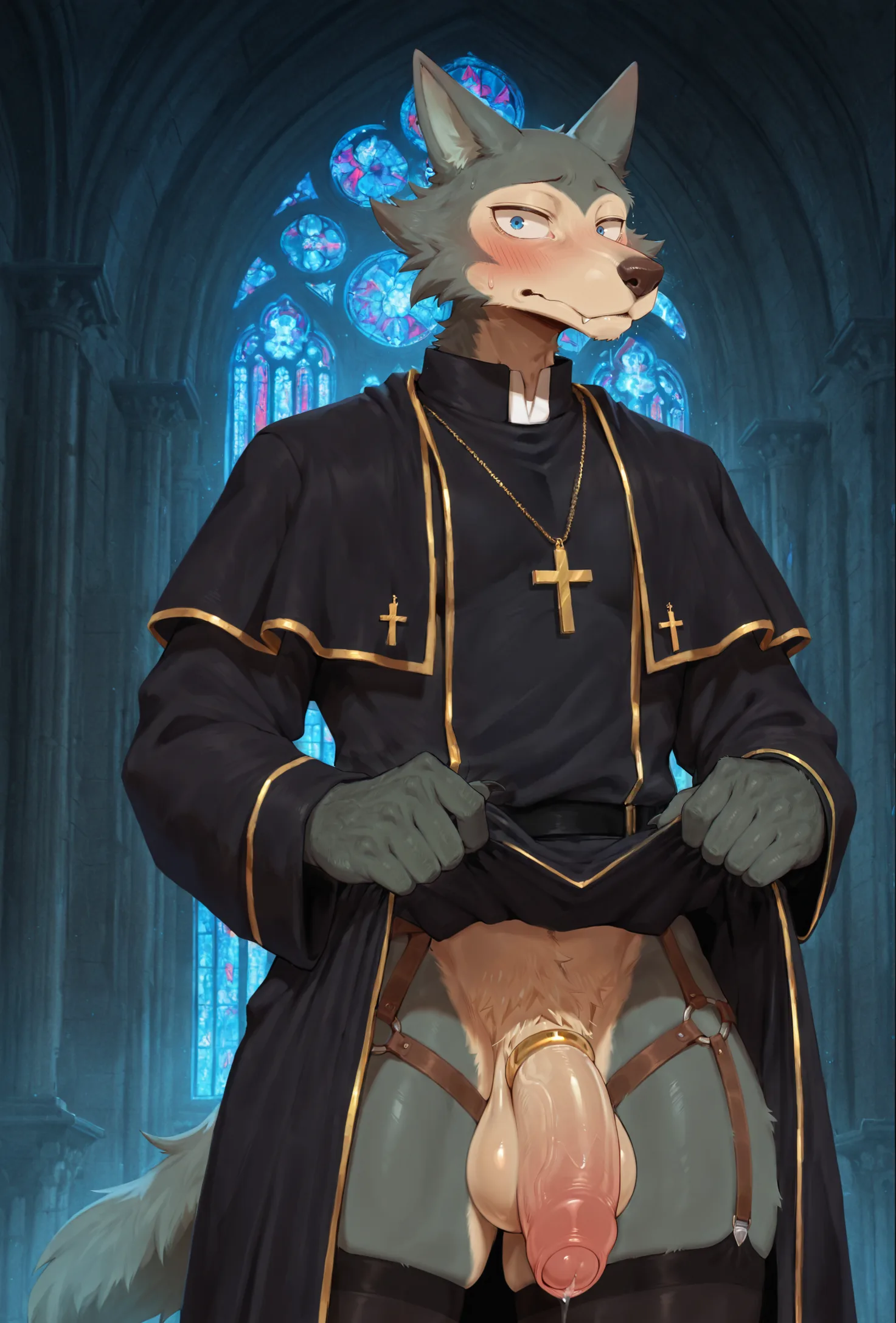 Legoshi Present Flaccid Penis In Church Wearing Robe Thigh Highs And C | Yiff Party
