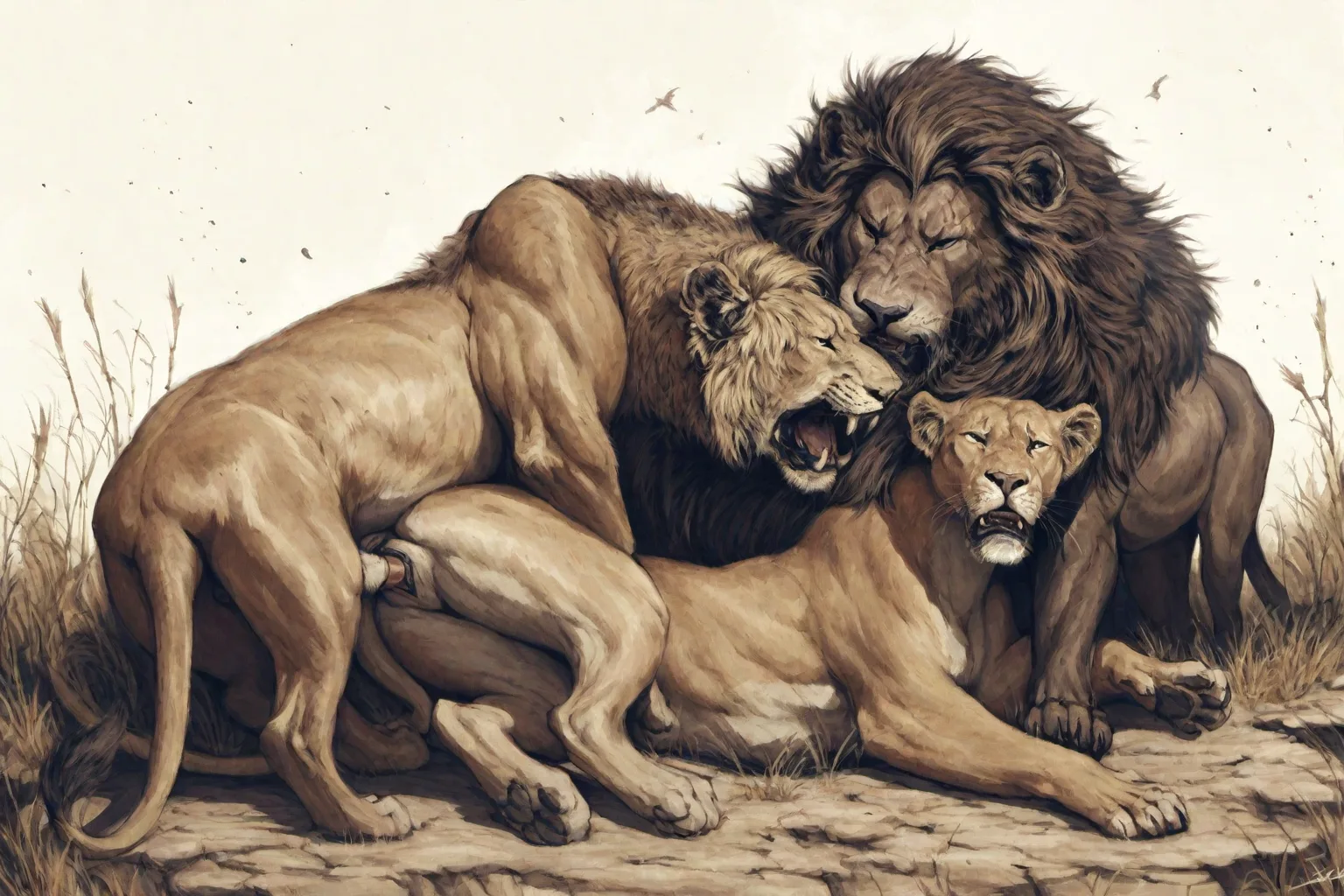 Lion And Panther Feral Trio Group Sex With Penetration | Yiff Party