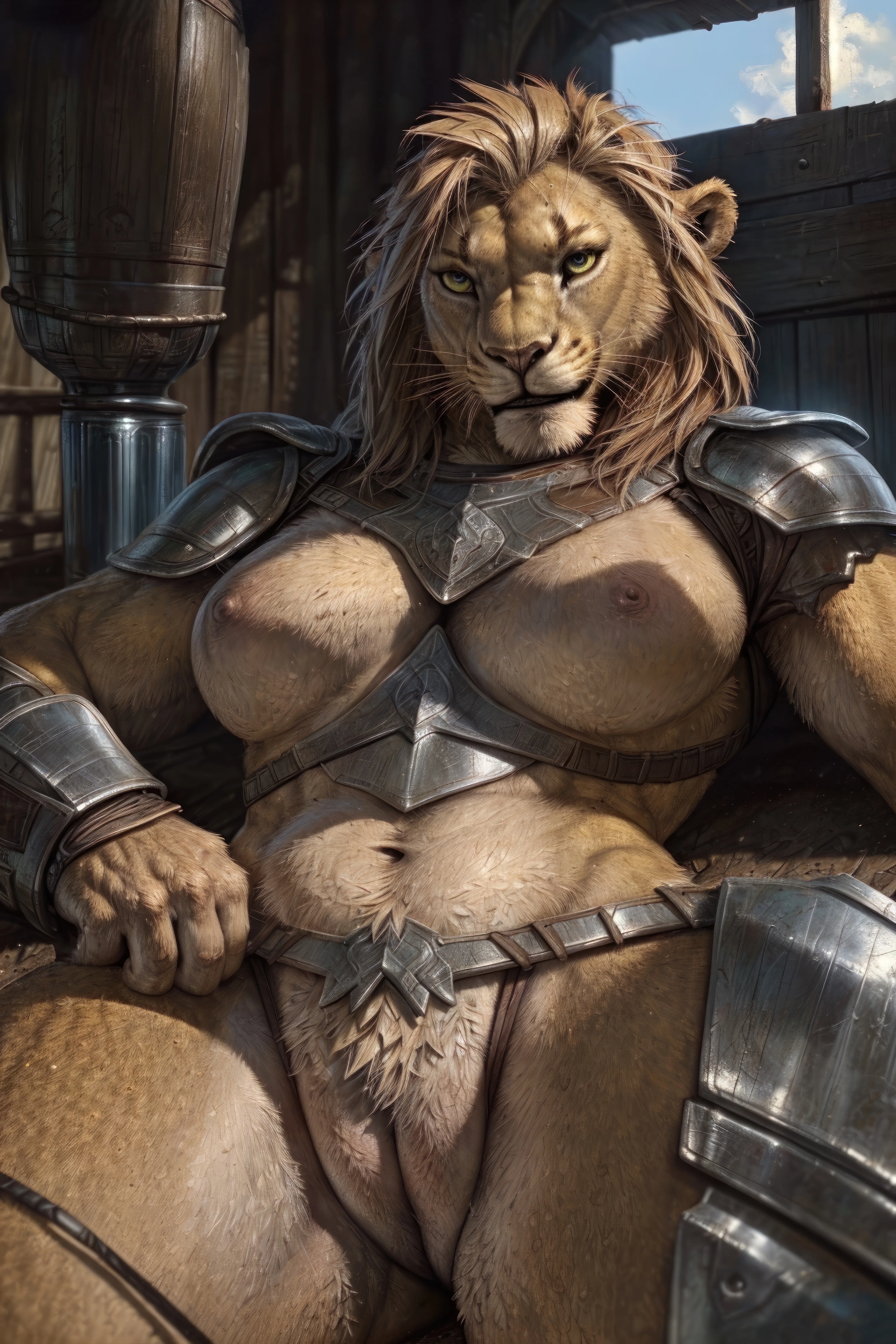 Lioness Warrior Bares Breasts Pussy In Castle Armor Solo | Yiff Party