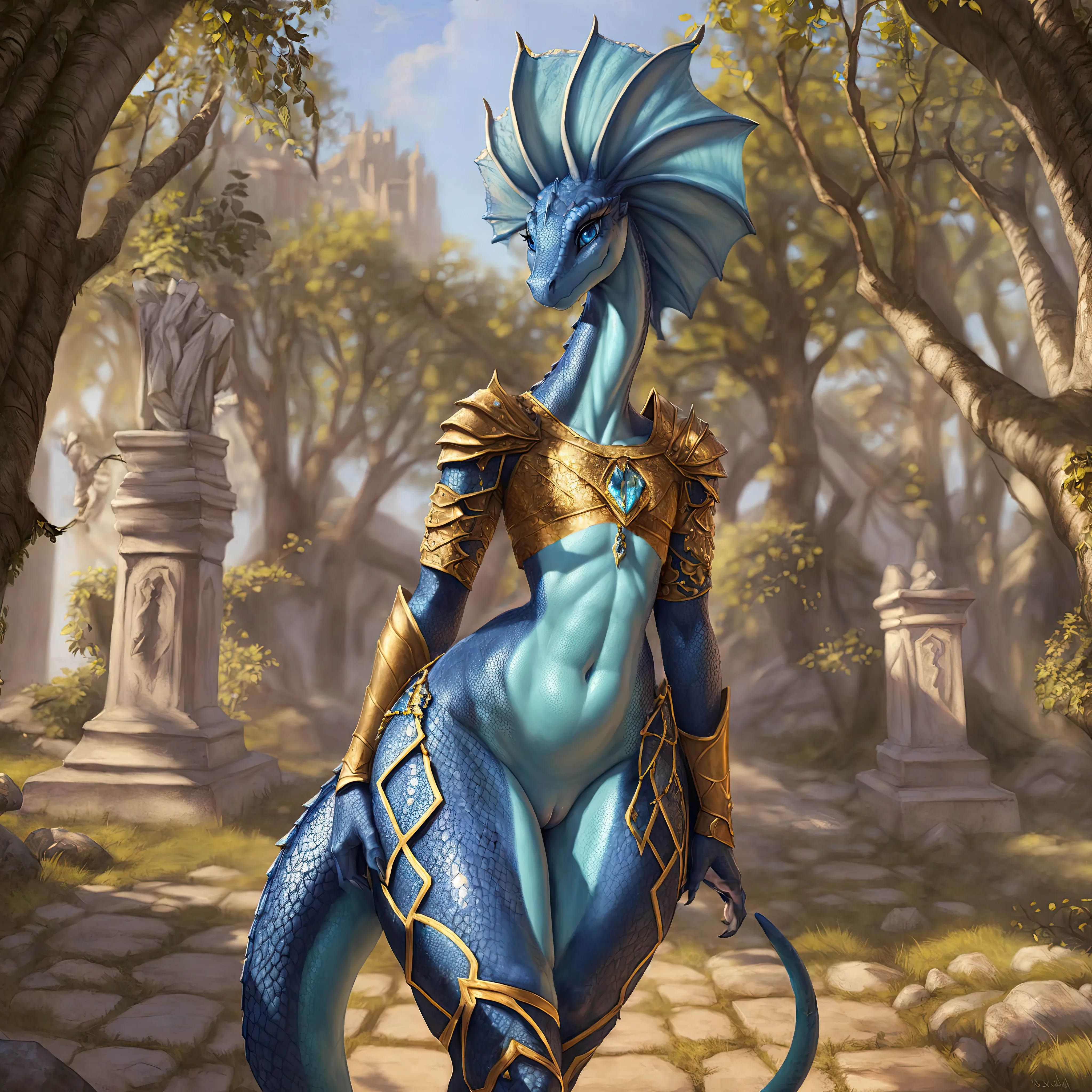 Lizard Lady Walks Outside In Armor With Naked Body And Happy Smile | Yiff Party