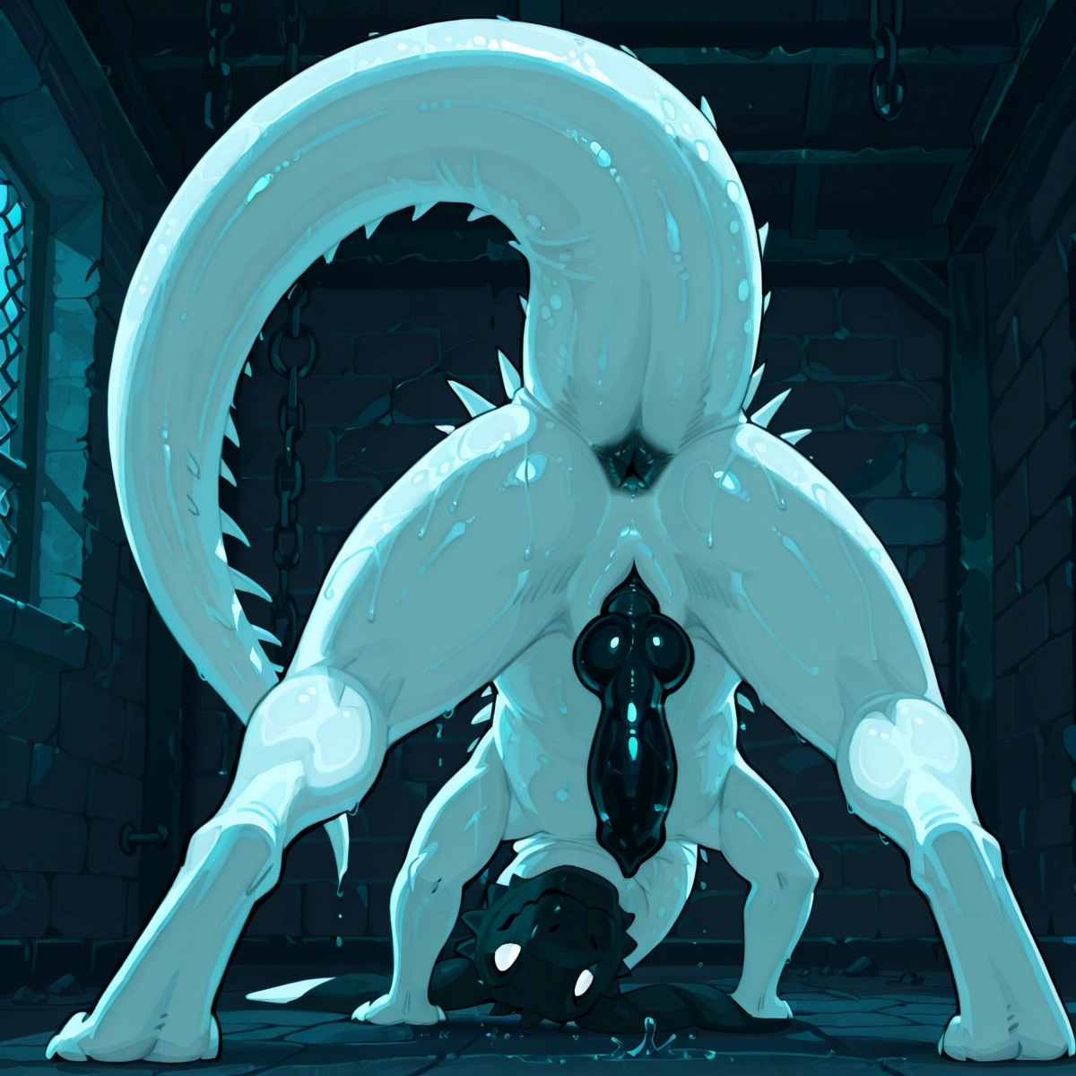 Lizard Presenting Wet Ass And White Spikes Near Brick Wall | Yiff Party