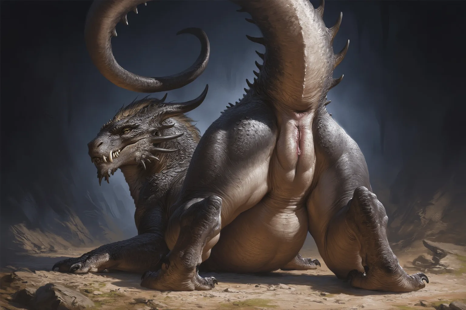 Lizard Scalie Presenting Pussy And Anus With Raised Tail In Cave | Yiff Party