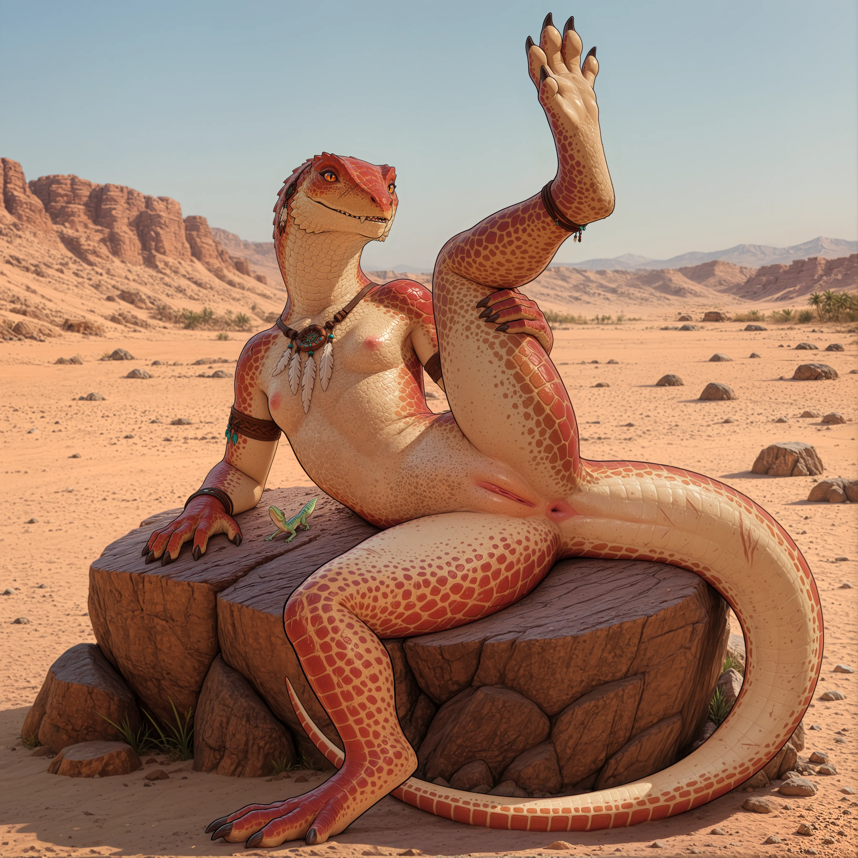 Lizardlady Seductively Presents Pink Pussy And Anus In Desert Sun | Yiff Party