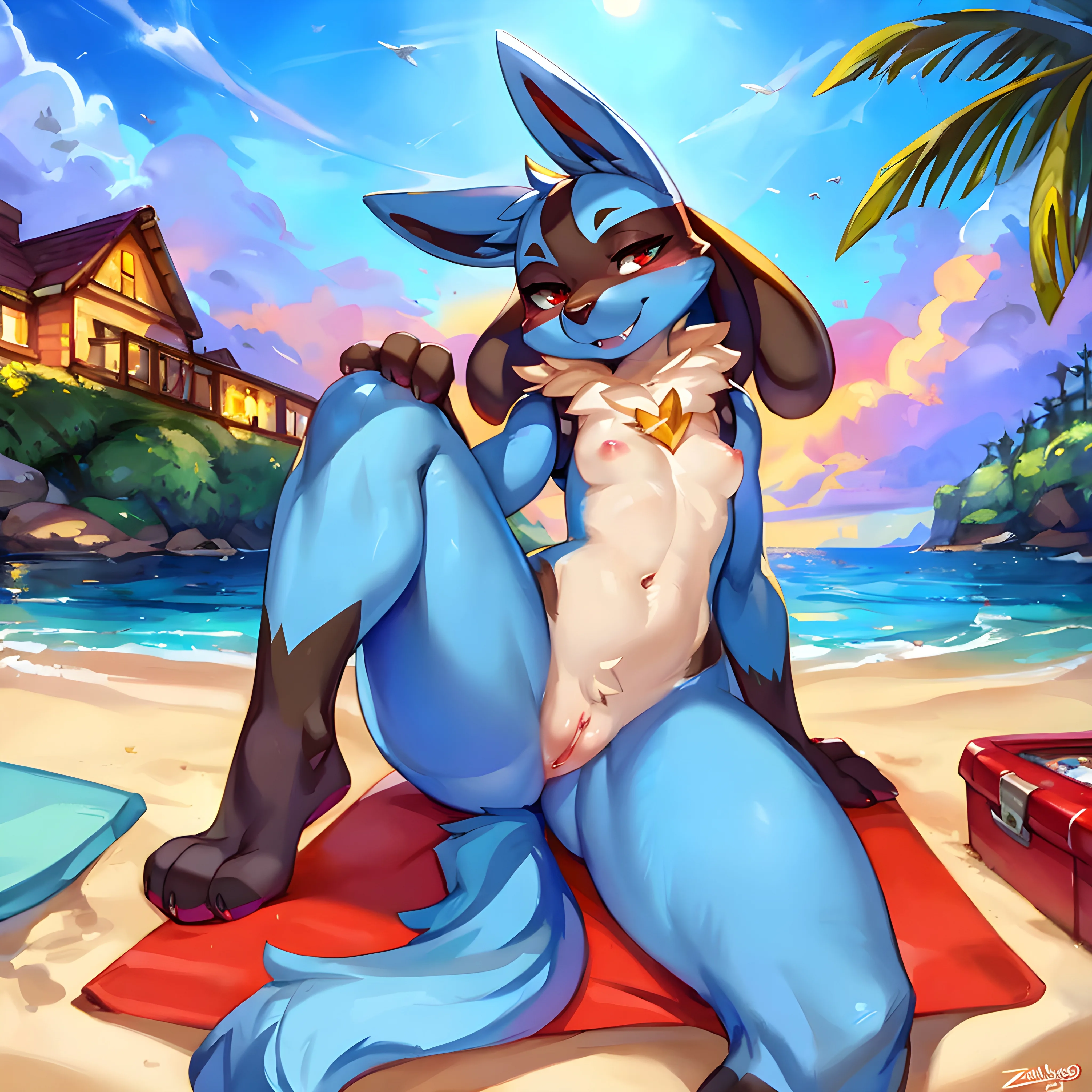 Lucario Babe Flaunts Wet Blue Pussy At Seaside Beach | Yiff Party