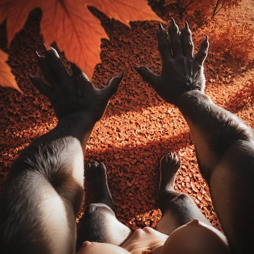Lusty White Werewolf Bitch Sucking Her Brown Canine Pussy In Autumn Fo | Yiff Party