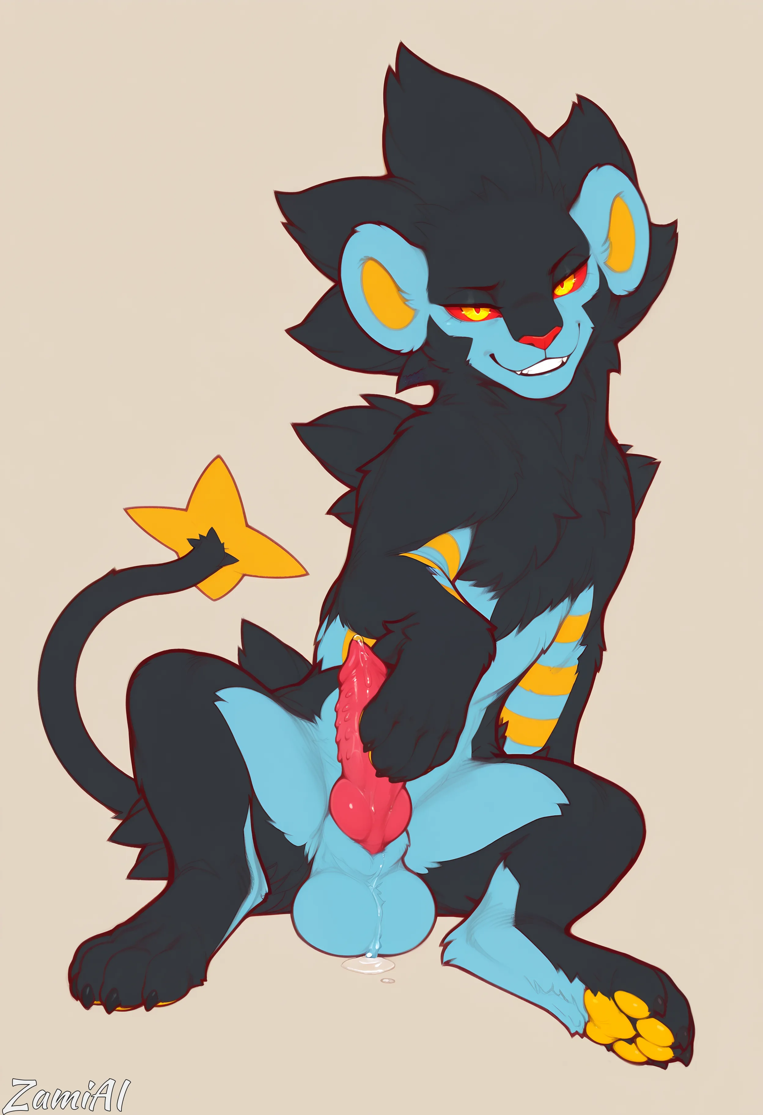 Luxray Furry Solo Feral Sitting Smiling Displaying Big Knotted Penis A | Yiff Party
