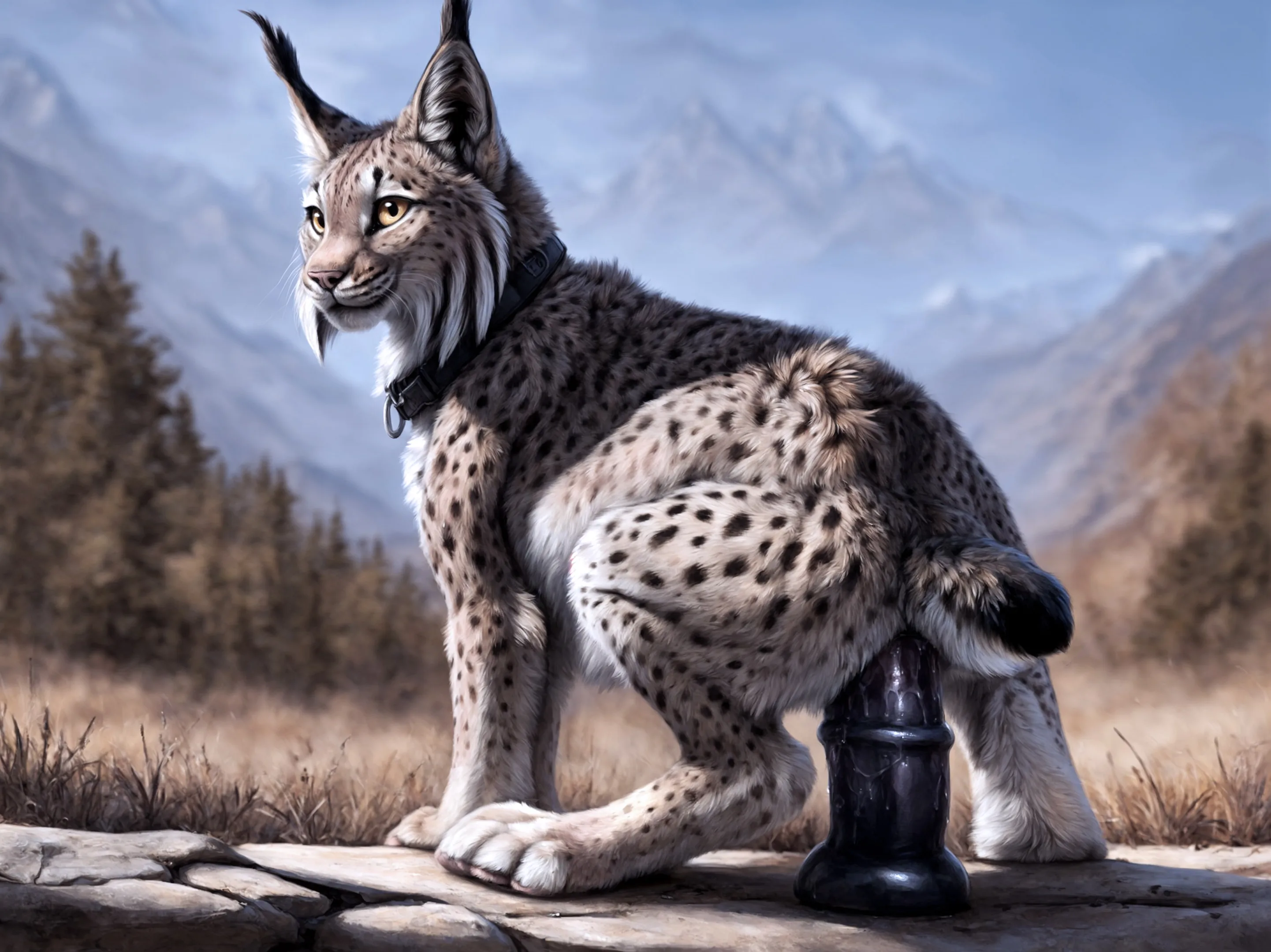 Lynx Girl Sits On Thick Veiny Black Dildo In Nature | Yiff Party